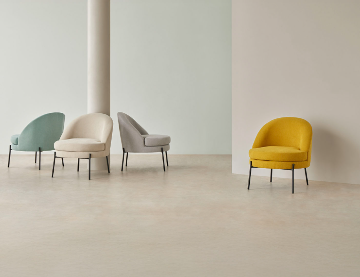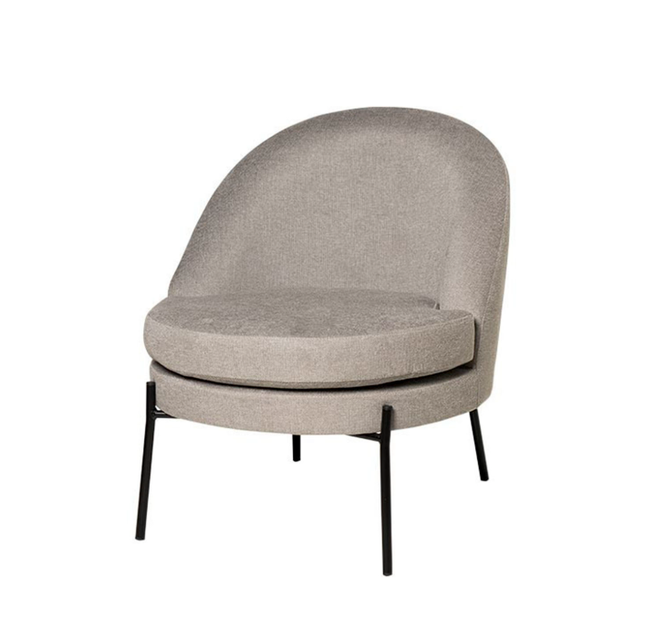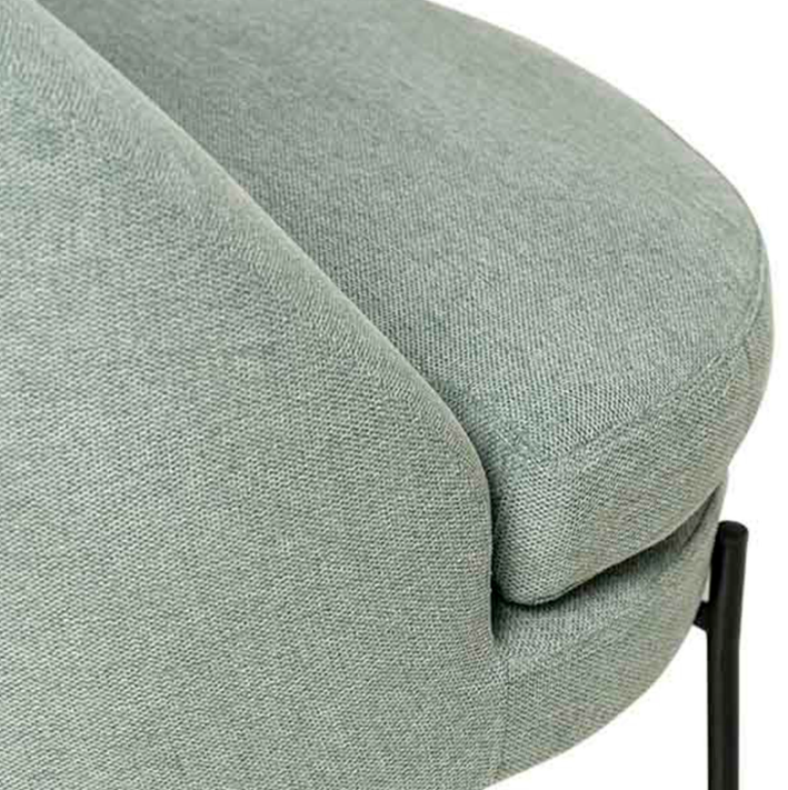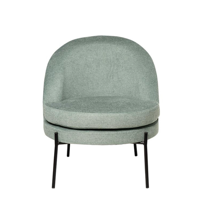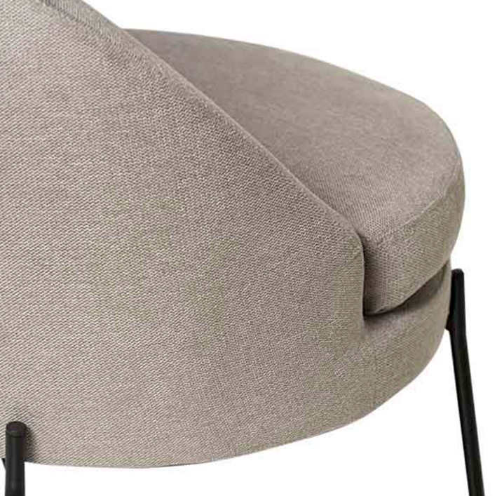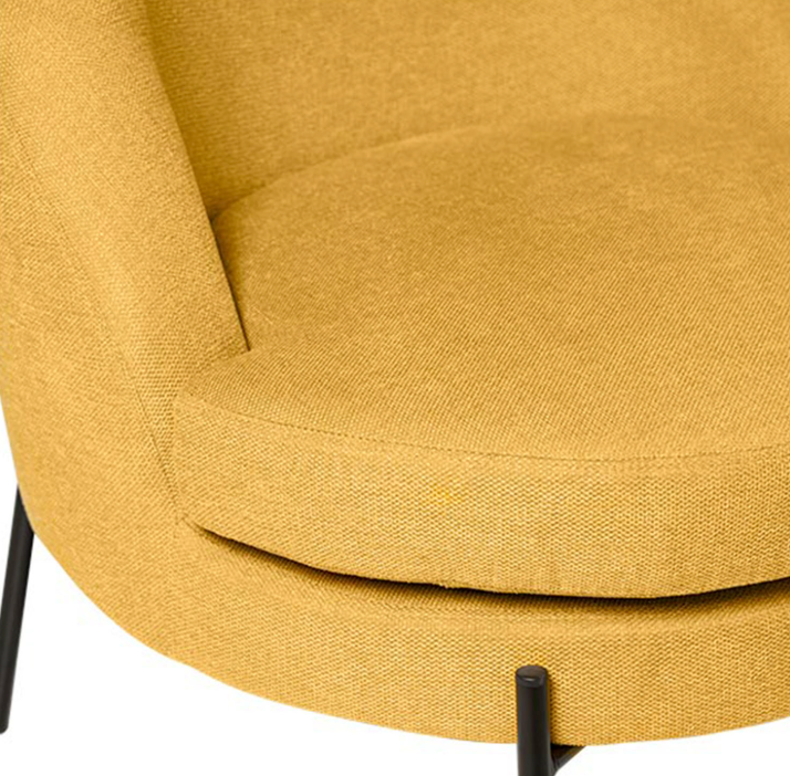Die dünnen schwarzen Metallbeine bilden einen eleganten Kontrast zur Polsterung und verleihen dem Sessel eine moderne und raffinierte Note.