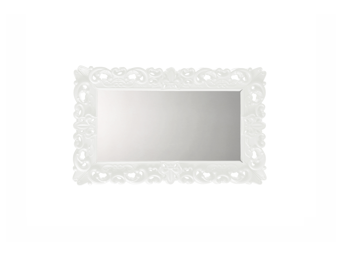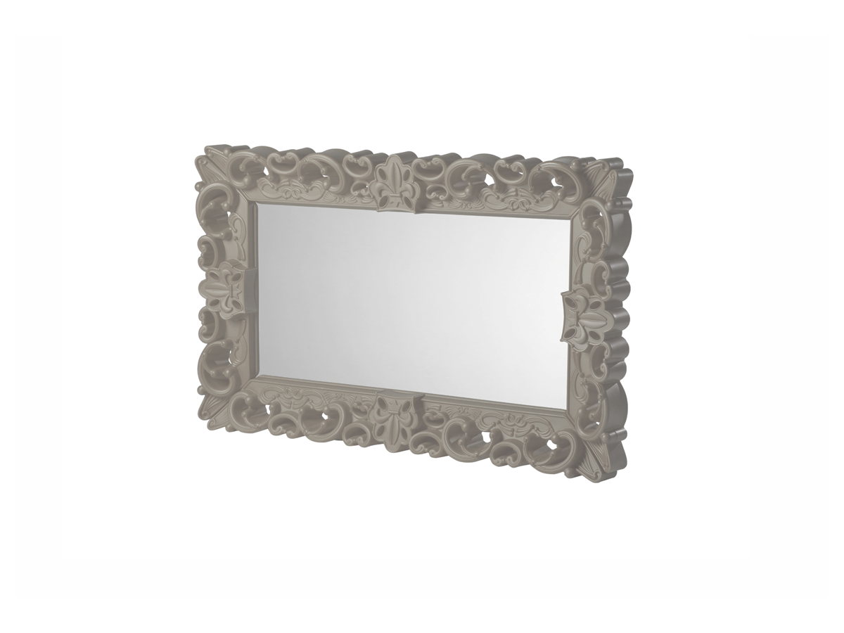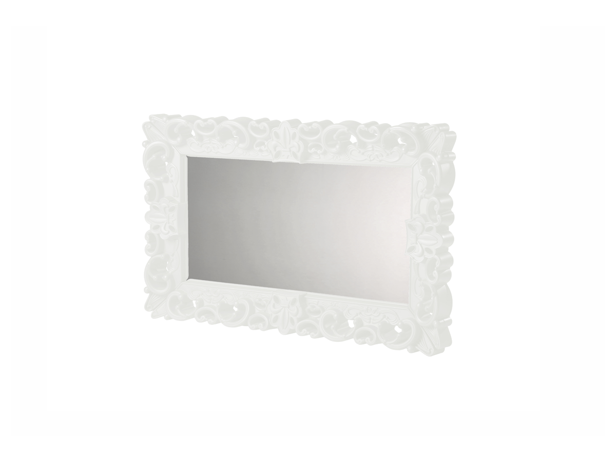 Der Frame of Love - M Spiegel ist ein sehr einzigartiges Objekt mit seinen bemerkenswerten Abmessungen und komplizierten Details im Rokoko-Stil, die zweifellos nicht unbemerkt bleiben können. Die imposante Größe der Seiten von 162 x 99 cm ermöglicht es dem Spiegel der Liebe mit seiner Majestät, zum Protagonisten der großen Mengen an Hallen, Ausstellungen und Galerien zu werden, die sich in die kürzlich von SLIDE vorgestellte Philosophie des Makrodesigns integrieren.