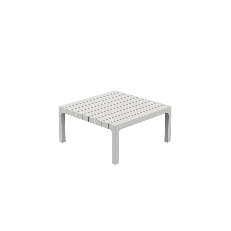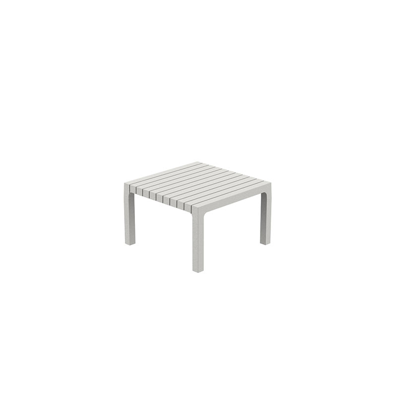 Aus glasfaserverstärktem Polypropylen gefertigt, ist er wetterbeständig und ideal für den ganzjährigen Einsatz im Freien. Seine kompakte, geradlinige Form passt perfekt in Umgebungen wie Pools, Terrassen, Gärten und Objektbereiche und bietet einen praktischen Platz zum Abstellen von Getränken, Büchern oder Accessoires.