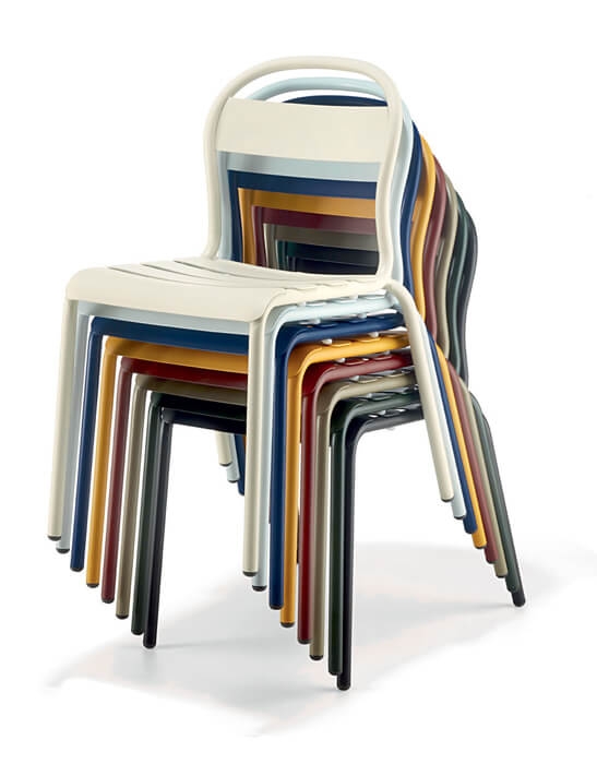 Alle Sitze dieser Kollektion bestehen aus Aluminium, einem Material, das sich perfekt an die leichte Ausstrahlung dieses Produkts anpasst, das hauptsächlich, aber nicht nur, für den Außenbereich gedacht ist. Wenn Sie STECCA sehen, lädt es Sie dank seiner einfachen und einladenden Art zum Entspannen ein.