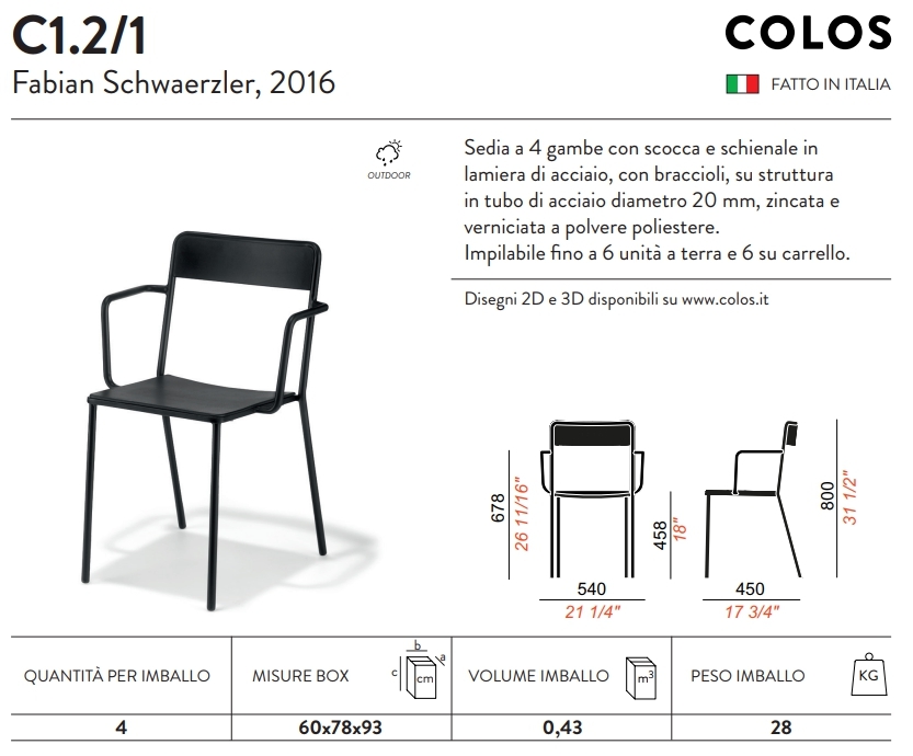 Version C1.2 teilt die Struktur und das Finish mit der vorherigen Version, von der sie die natürliche Entwicklung darstellt, da zwei bequeme röhrenförmige Eisenarmlehnen hinzugefügt wurden, die den Komfort und die Tragbarkeit erhöhen.
