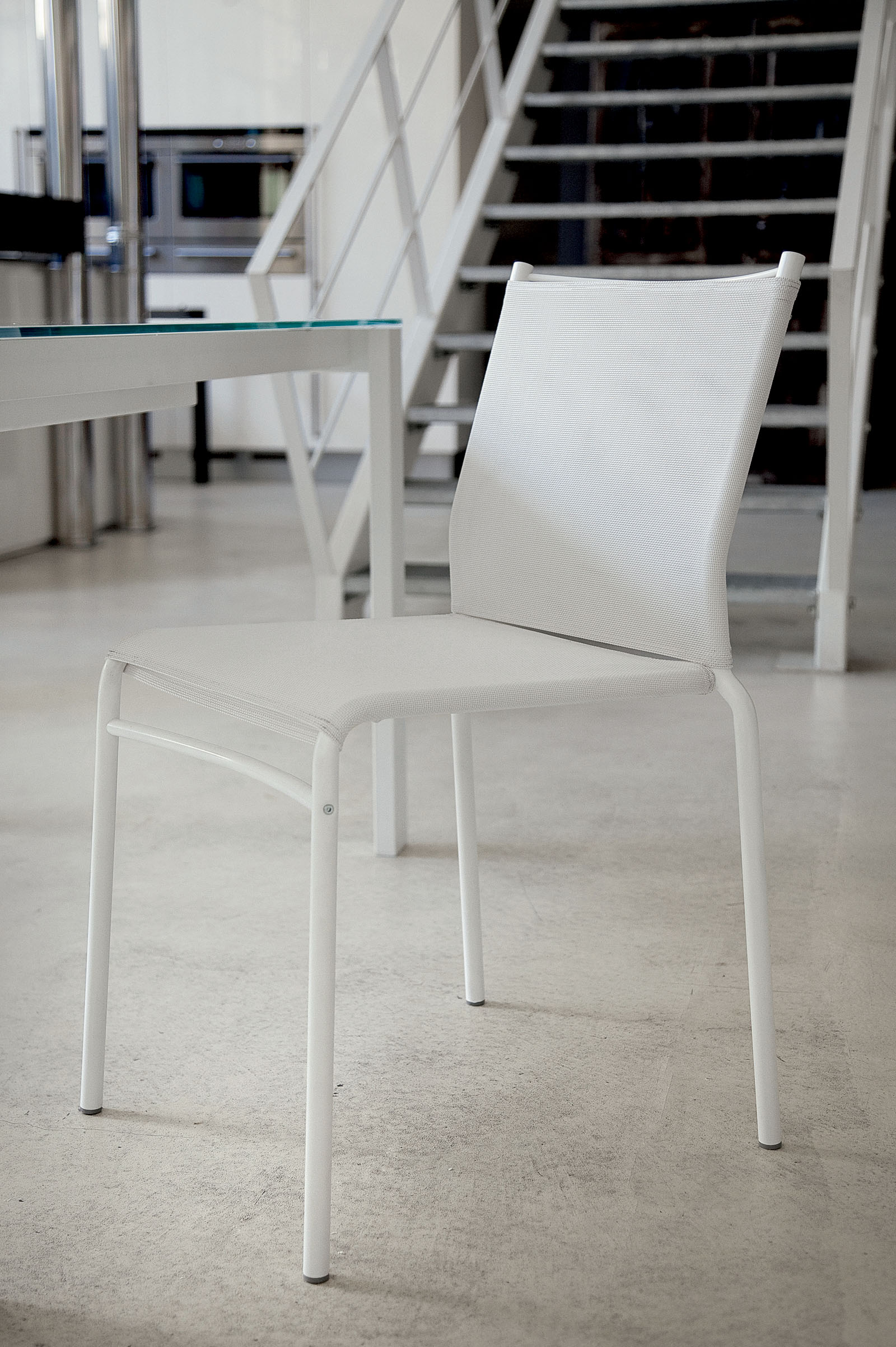 Stuhl mit lackiertem Stahlrahmen ALUMINIUM M089, WEISS M306, SAND M312, ANTHRAZIT M310 oder SCHWARZ M055, Sitz und Rückenlehne aus Texplast oder Soft Textplast