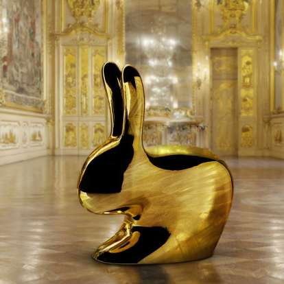 Springen Sie auf dieses Außergewöhnliche! Der von Stefano Giovannoni entworfene Rabbit-Stuhl kann sowohl auf die Ohren gestützt als auch auf der gegenüberliegenden Seite verwendet werden, auf ihm reiten und die Unterarme auf den Ohren ruhen lassen. Die authentischsten Qeeboo-Drillinge. oder nur für den internen Gebrauch