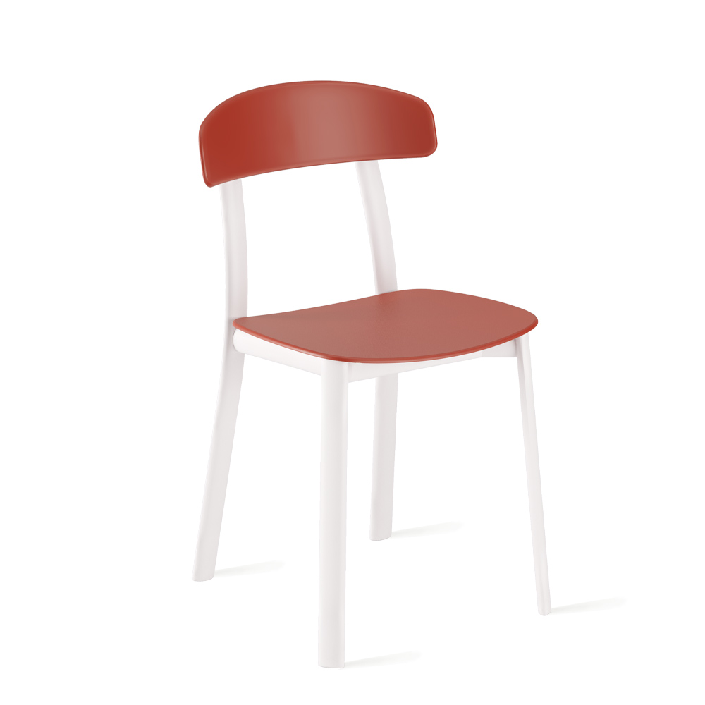 Bei Feluca Pop weicht Holz Polypropylen, das in Kombination mit der elliptischen Metallstruktur lebendige Kontraste erzeugt.