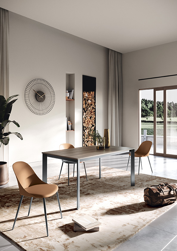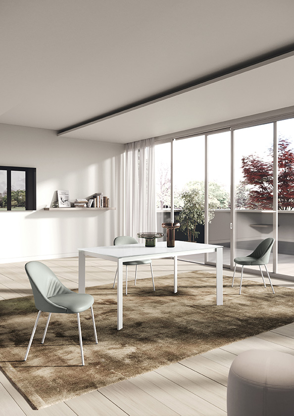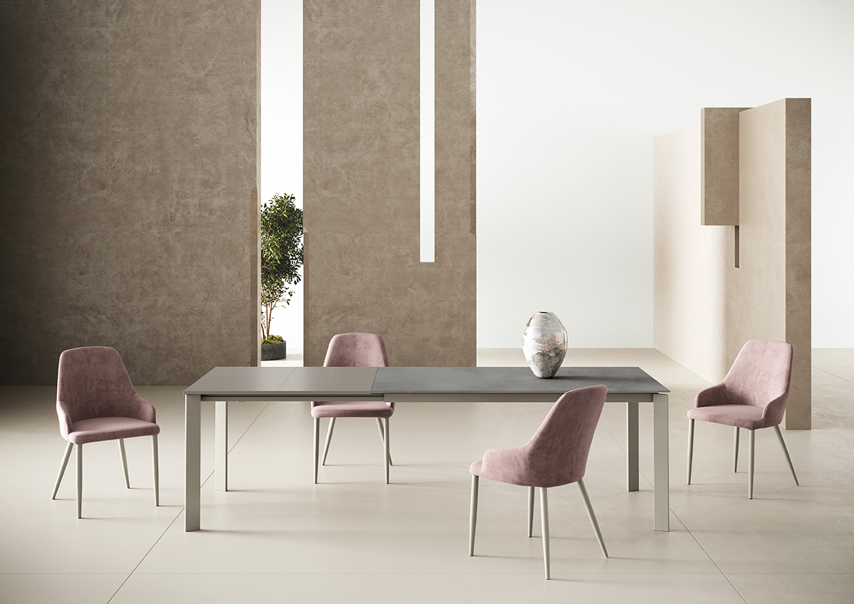 Ausziehbarer rechteckiger Tisch mit lackierter Stahlstruktur. Platte und Verlängerungen aus Melamin, glänzendem Kristall, kratzfestem Samtkristall, SperCeramica und SuperMarmo.