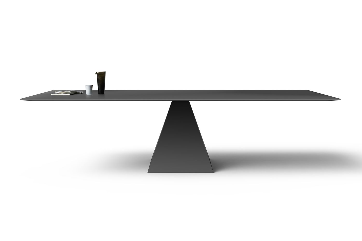 Ein ikonischer Tisch: Landing ist die kompositorische Synthese zwischen Leichtigkeit und Solidität. Die Horizontalität der großen Platte ruht auf der Spitze der pyramidenförmigen Basis in einem magischen Gleichgewicht, das sie zu einem einzigartigen Stück seiner Art macht. Landing ist ein Tisch mit klaren Linien, der Reinheit und Schlichtheit zum Markenzeichen eines zeitlosen Design-Archetyps macht.