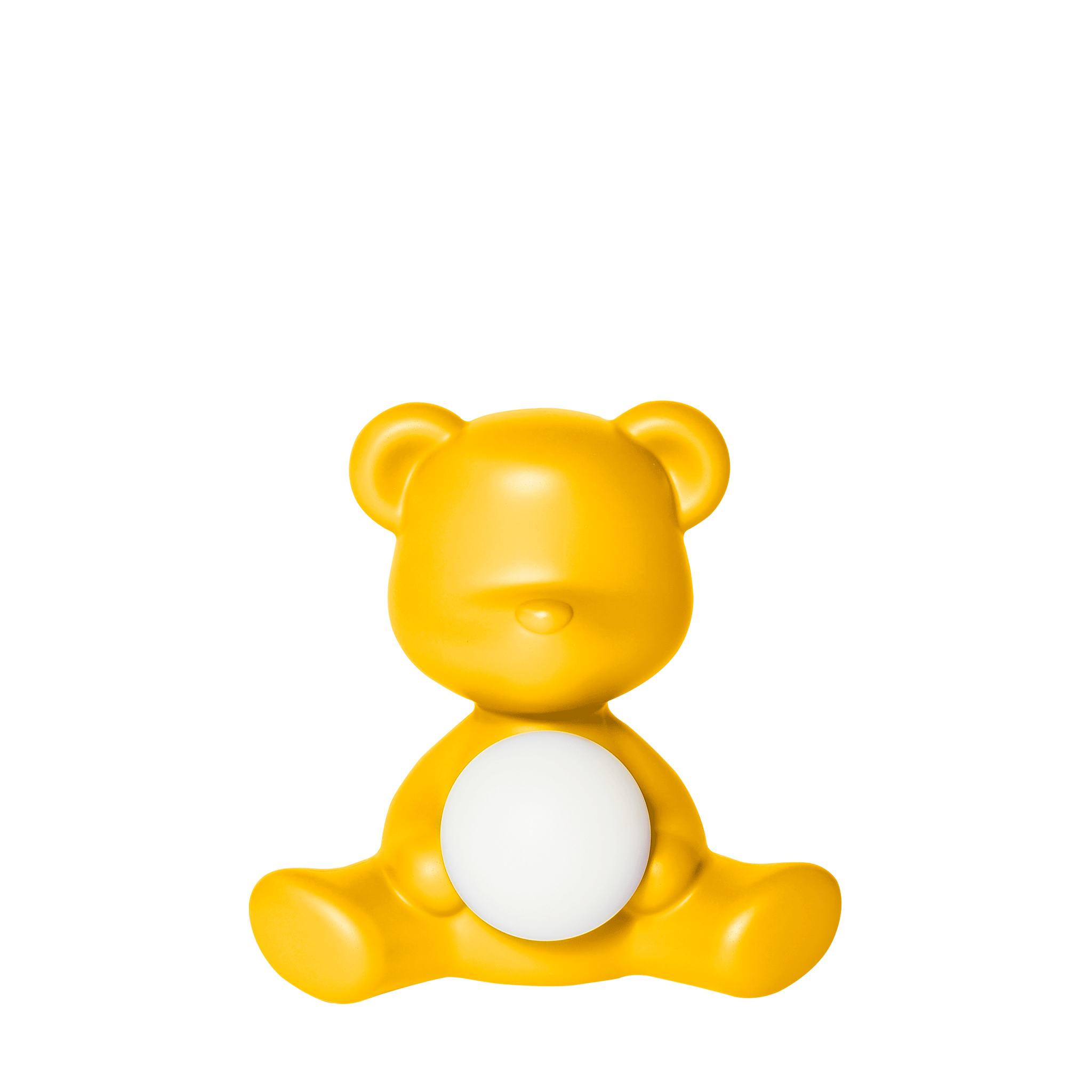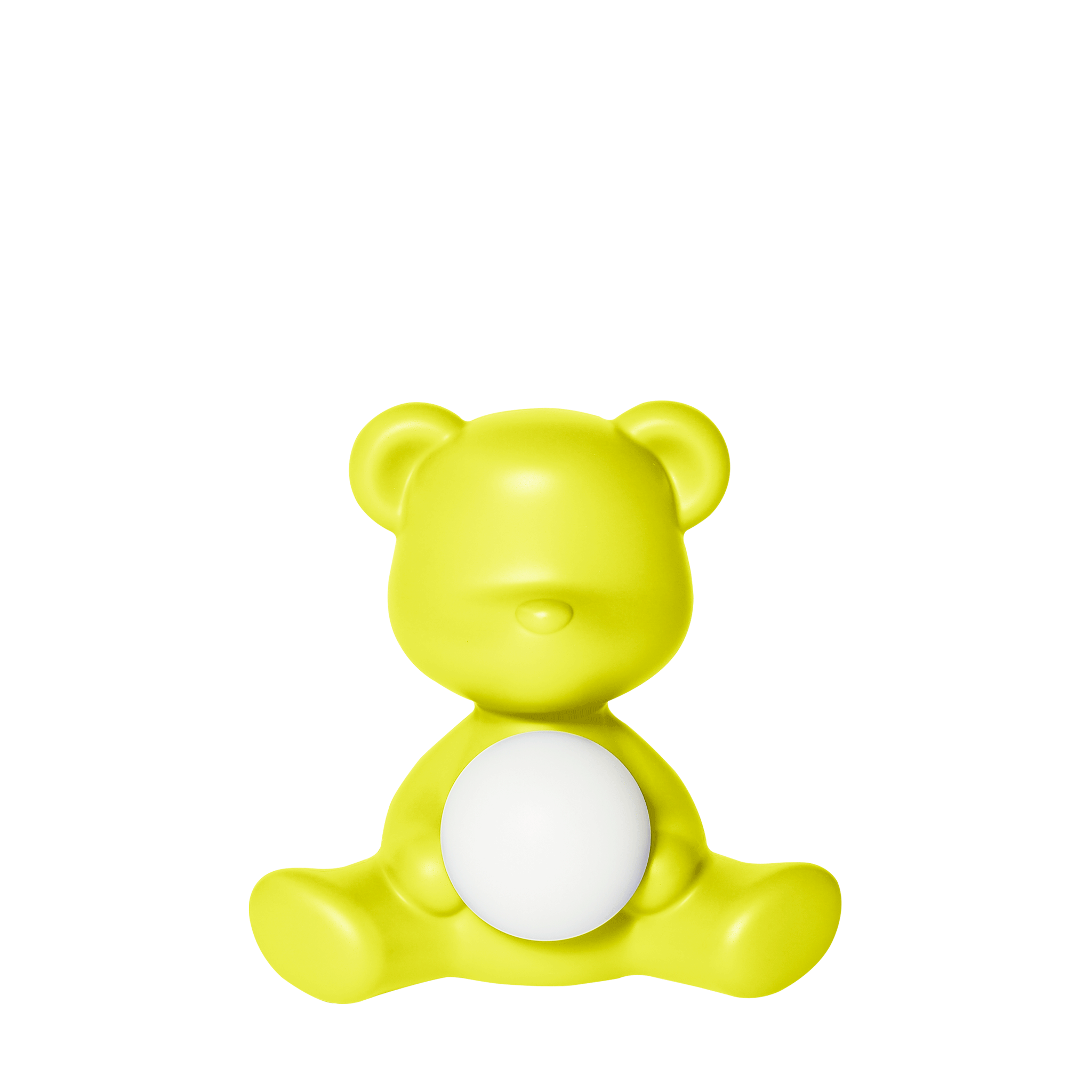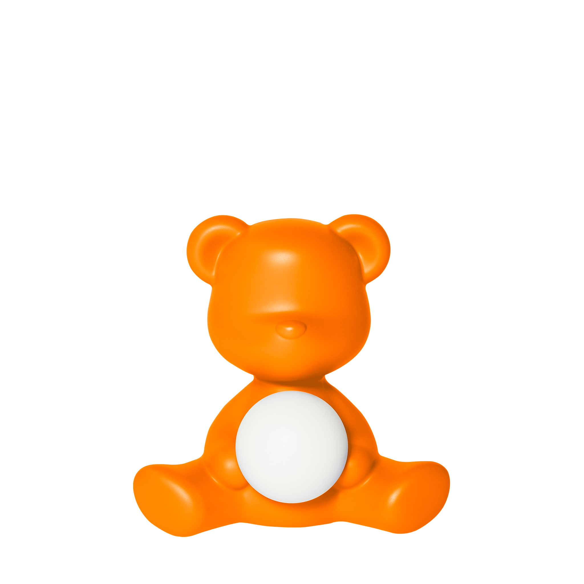 Entworfen von Stefano Giovannoni mit dem Aussehen eines traditionellen Teddybären, ist Teddy Girl eine kabellose wiederaufladbare Tischlampe, die eine kleine leuchtende Kugel umarmt. Schüchtern und zart bringt es die zarte Seele des Teddybären zum Vorschein.