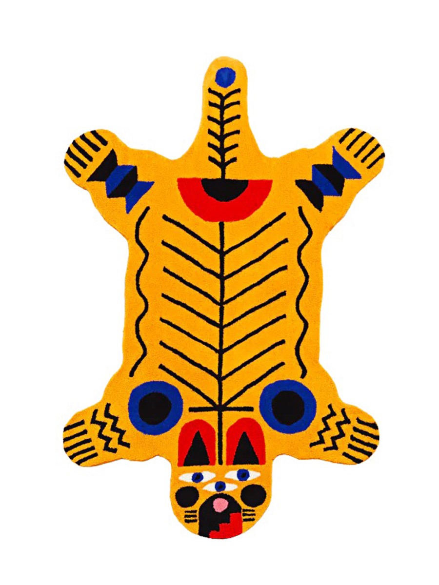 Qeeboo setzt die Entwicklung der Teppichfamilie mit einer neuen, von Marco Oggian entworfenen Kollektion fort, die sich durch eine Vielzahl leuchtender Farben und starke Geometrien auszeichnet. Entdecken Sie den italienischen Teppich „Tiger M“ (Form) von Oggian