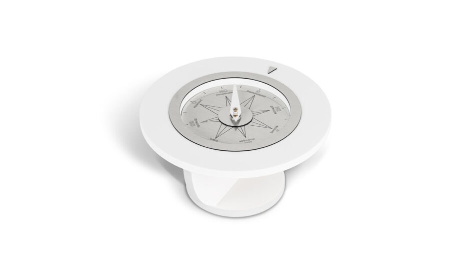 Das Zifferblatt von Heliantus stellt die Windrose dar. Es muss gedreht werden, um die Himmelsrichtungen zu markieren, die sich auf die Umgebung beziehen, in die es eingesetzt wird. Auf diese Weise markiert das Objekt sowohl tagsüber als auch nachts den Stand der Sonne.