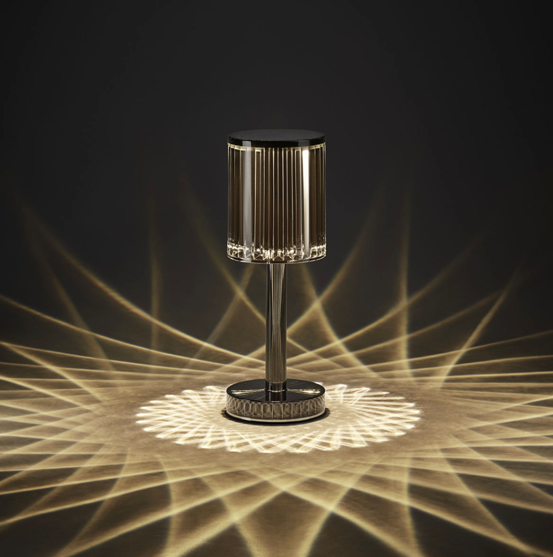 Tischlampe aus PMMA mit Einspritzsystem.