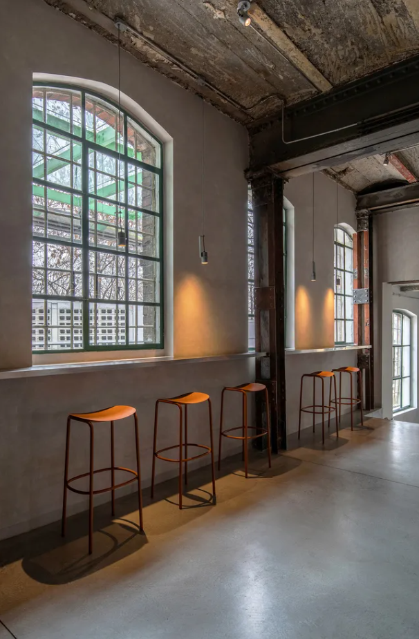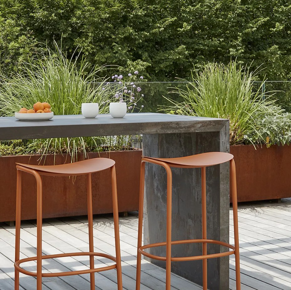 Trick eignet sich perfekt für Innenräume wie moderne Küchen oder Bartheken und ist mit lackiertem Rahmen oder eleganter verzinkter Oberfläche erhältlich.