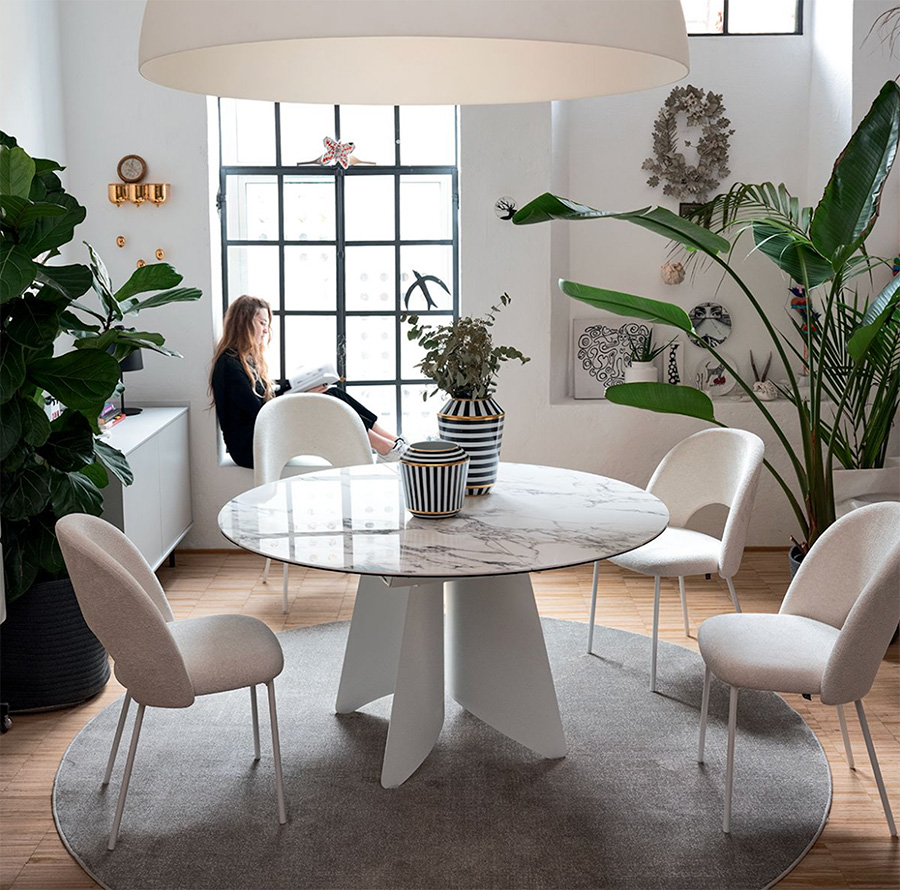 Mit einem großen zentralen Loch , einer umhüllenden Rückenlehne und weichen Linien stellt dieser Stuhl ein neues Kapitel in der Entwicklung der Tuka-Familie dar. Sein von den 1950er Jahren inspiriertes Retro-Design erinnert an klassische Fast-Food-Stühle, die mit einem modernen Touch neu interpretiert wurden, um perfekt in jede zeitgenössische Umgebung zu passen.
