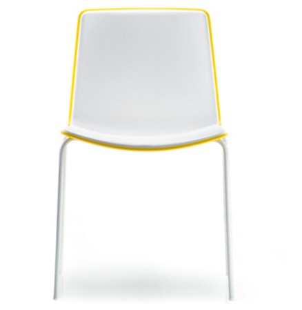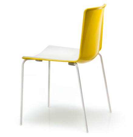 Der Tweet-Stuhl entstand aus dem Wunsch heraus, ein rationales Einrichtungselement zu schaffen, das sich auch in den am meisten vernetzten Umgebungen einfügen lässt und seinen Stil respektiert. Die Schale besteht aus doppelt spritzgegossenem Polypropylen mit einer glänzenden Rückseite und einer kratzfesten, matten Vorderseite. Der Stahlrahmen Ø14 mm ist lackiert, verchromt oder schwarz verchromt erhältlich.