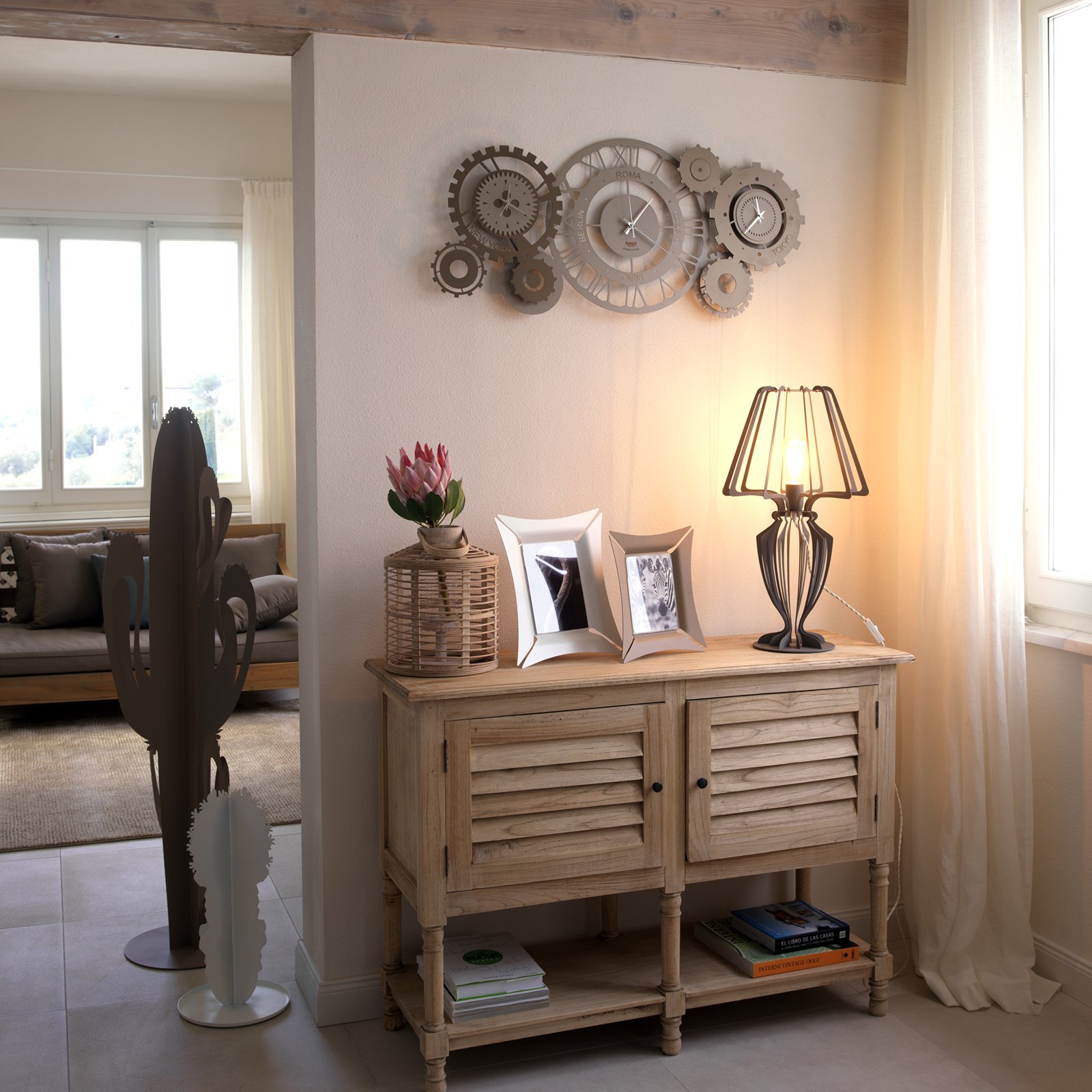 Die Uhr Fuso Meccano 3112 von Arti e Mestieri ist eine Wanduhr mit industriellem und modernem Charakter, inspiriert von der Ästhetik mechanischer Strukturen und modularer Systeme. Eine einzigartige dekorative Ergänzung, die sich durch ihre längliche Form und geometrischen Details auszeichnet und sich perfekt für die Einrichtung moderner Umgebungen mit Persönlichkeit eignet.
