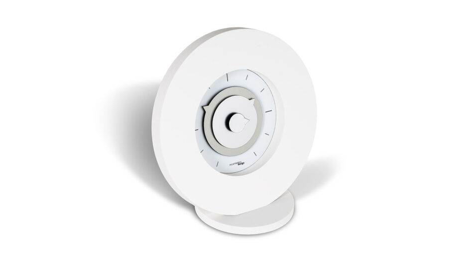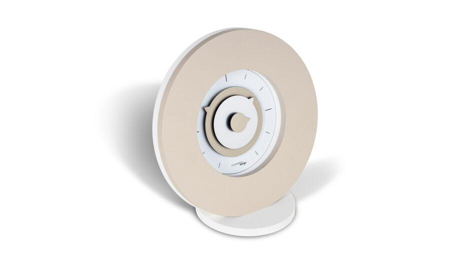 Die Stütze und der Rahmen bestehen aus halbexpandiertem PVC mit hoher Dichte. Das Zifferblatt ist aus geschichtetem Laminat gefertigt und mit High-Tech-Werkzeugen graviert.