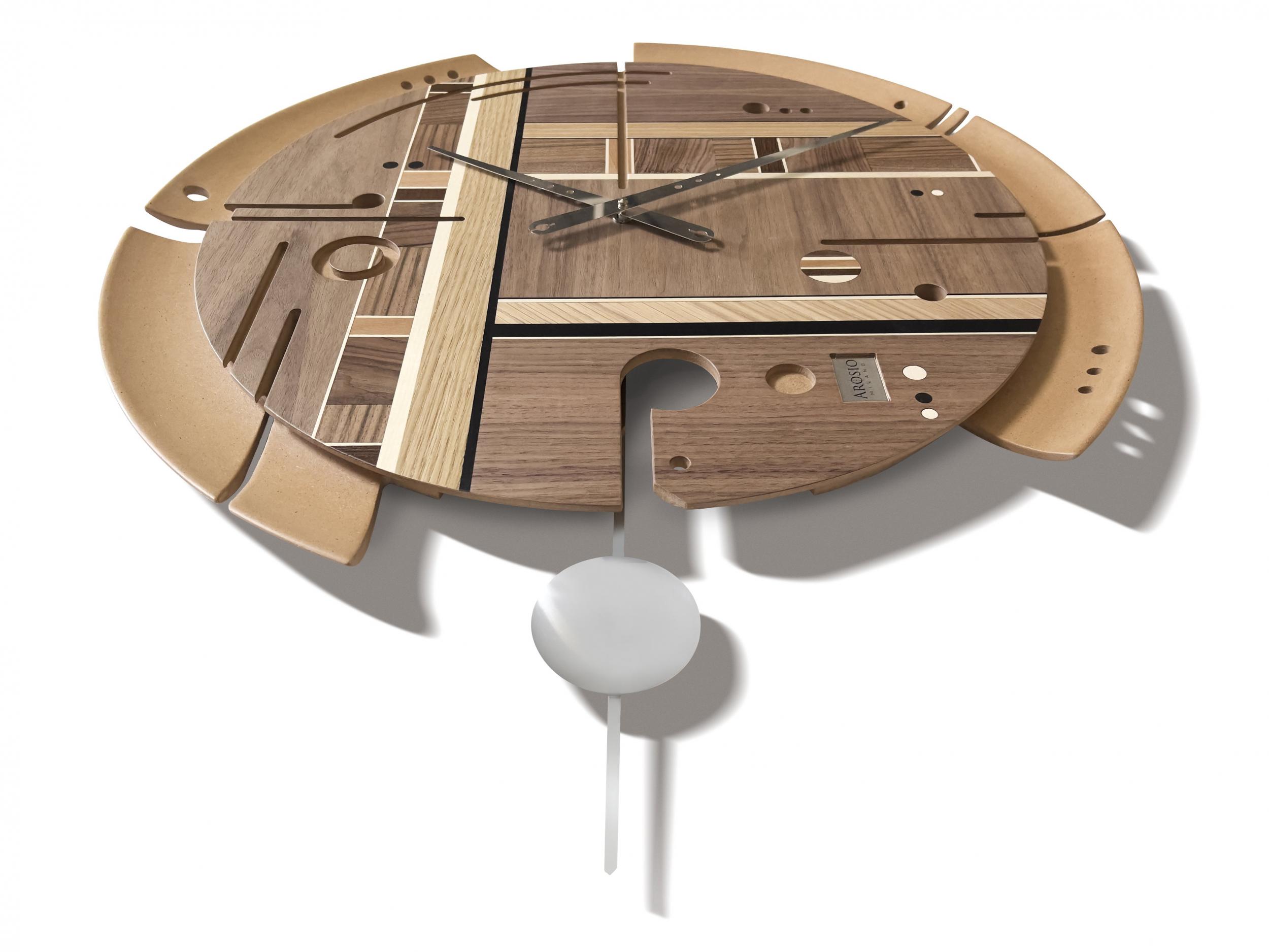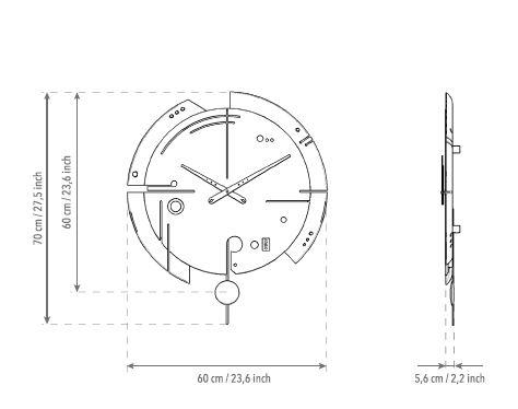 Das in Deutschland hergestellte, superleise Quarzwerk sorgt für Präzision. Die großen, personalisierten Zeiger sind wie das schwingende Pendel verchromt. Die Gravur auf der Rückseite mit dem ArosioMilano-Logo und die Platine auf dem Zifferblatt garantieren seine Originalität.
