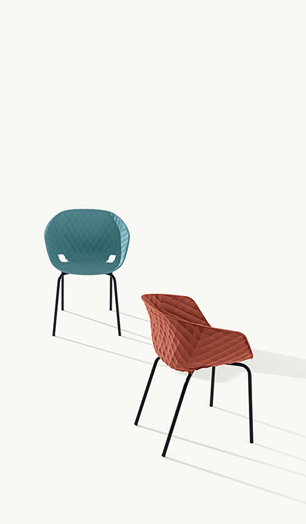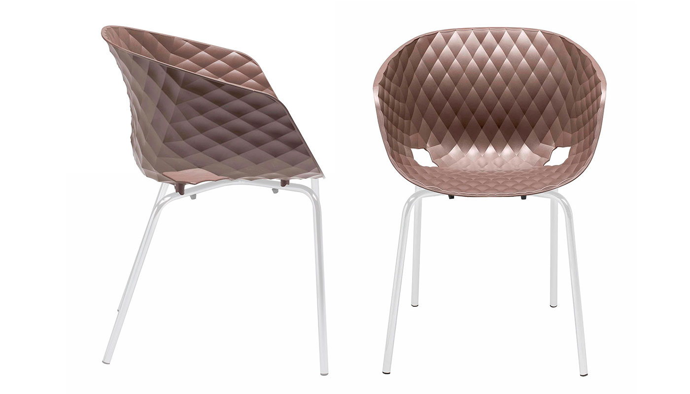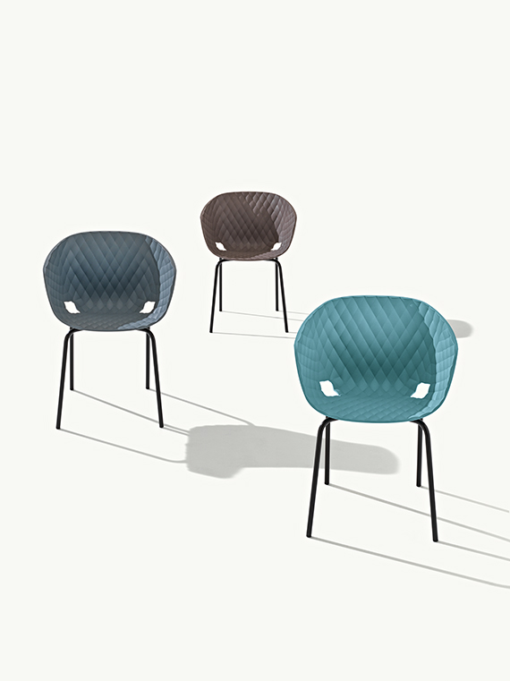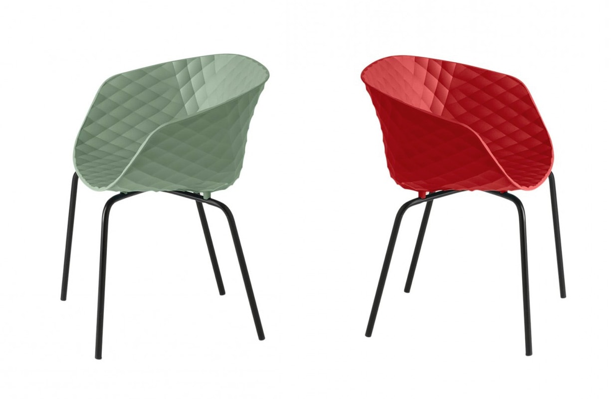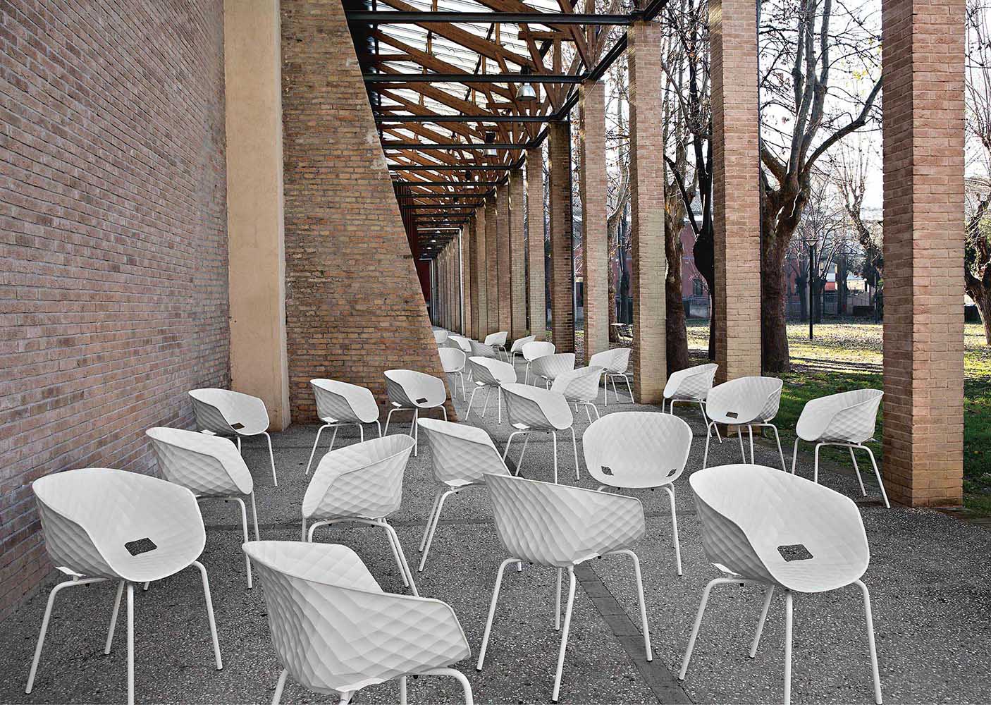 Uni-Ka, Weiterentwicklung der Marke Metalmobil, ist ein raffinierter Sessel mit umhüllendem Design, entworfen von Et al. Der Körper besteht aus glasfaserverstärktem Polypropylen und hat eine elegante Textur, die seine Ästhetik bereichert.