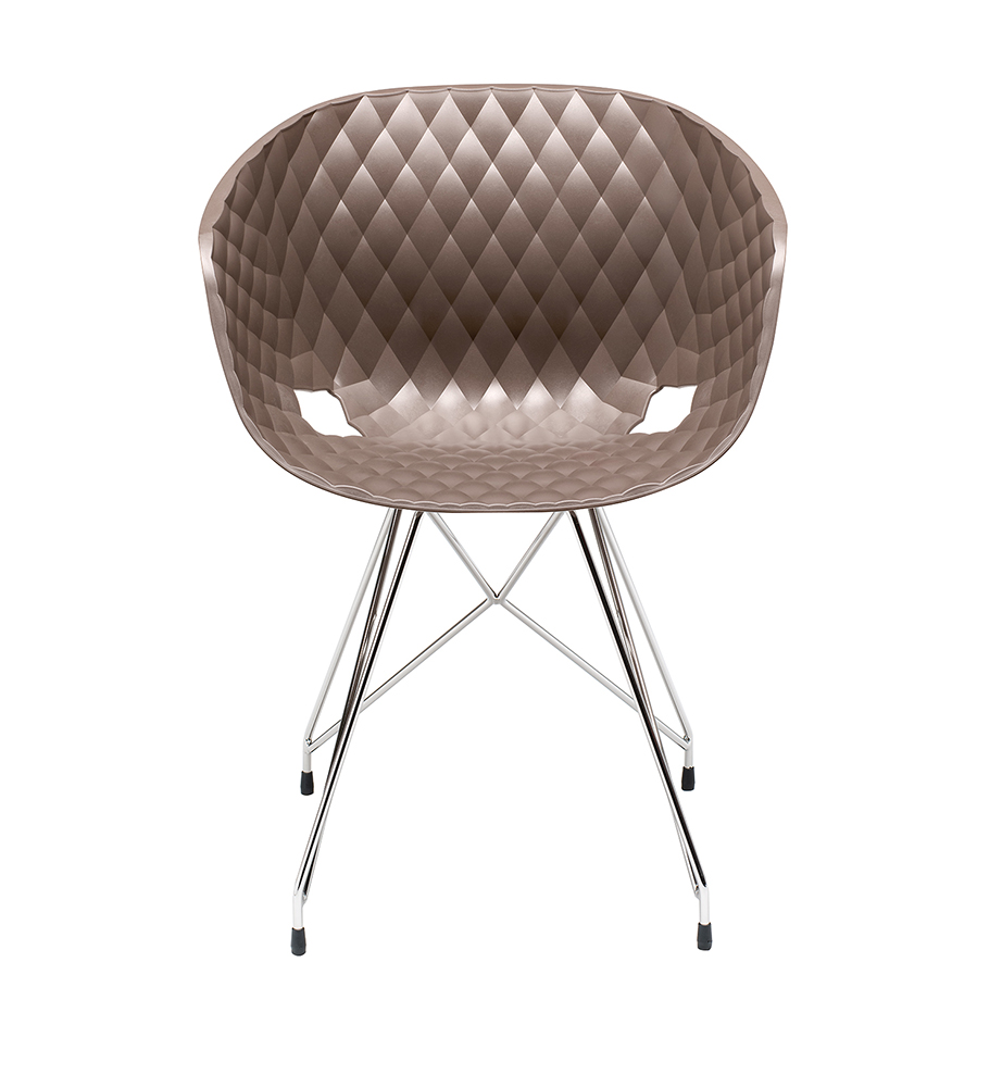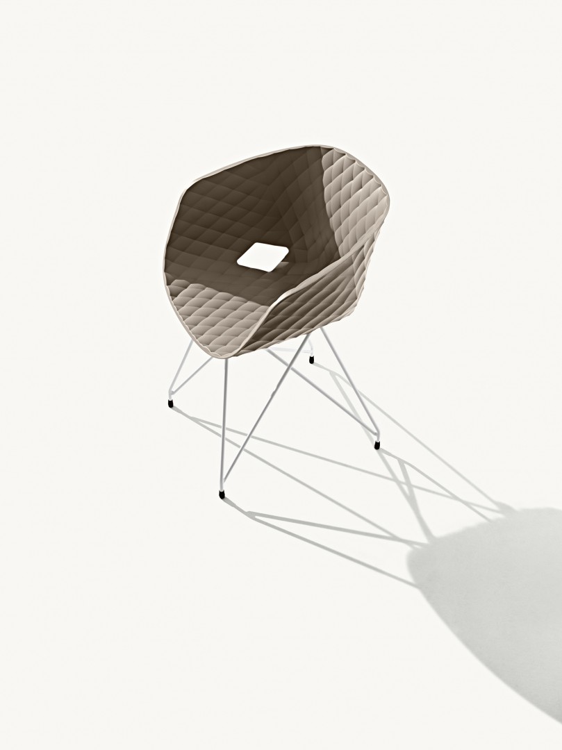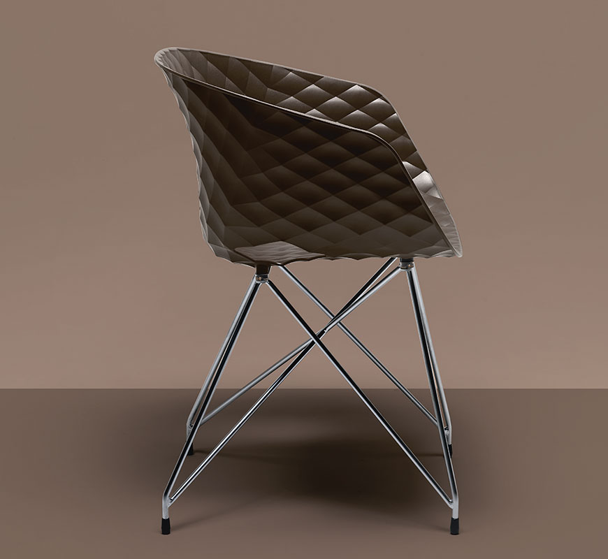 Uni-Ka, Weiterentwicklung der Marke Metalmobil, ist ein raffinierter Sessel mit umhüllendem Design, entworfen von Et al. Der Körper besteht aus glasfaserverstärktem Polypropylen und hat eine elegante Textur, die seine Ästhetik bereichert.