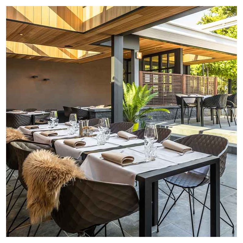 Das Stahlgestell bietet verschiedene Varianten: 4-beinig, Spalier oder Kufen und ermöglicht so die Anpassung an unterschiedliche Einrichtungs- und Stilbedürfnisse.