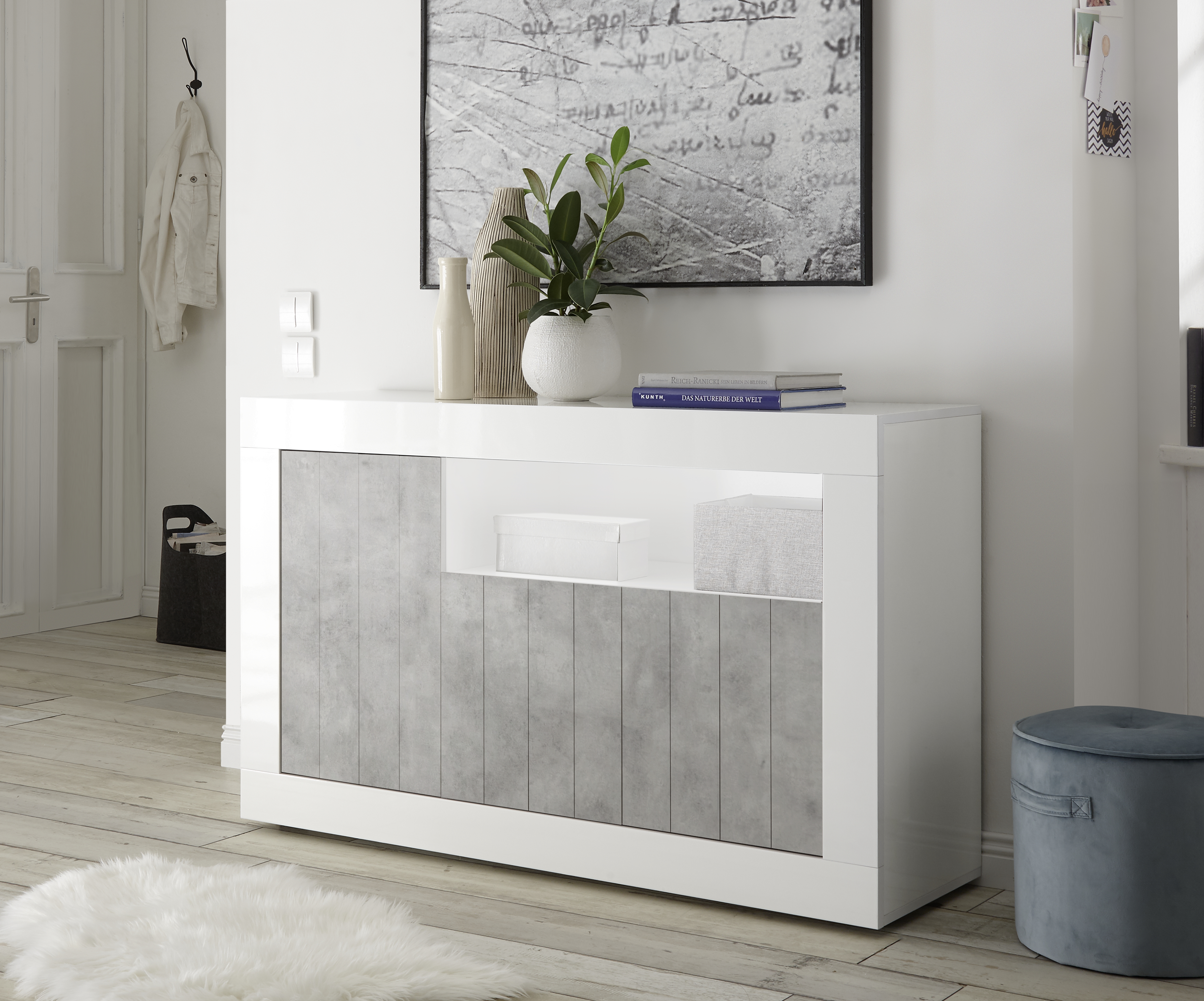 | Beenden | Glänzend lackiert weiß / Zement |