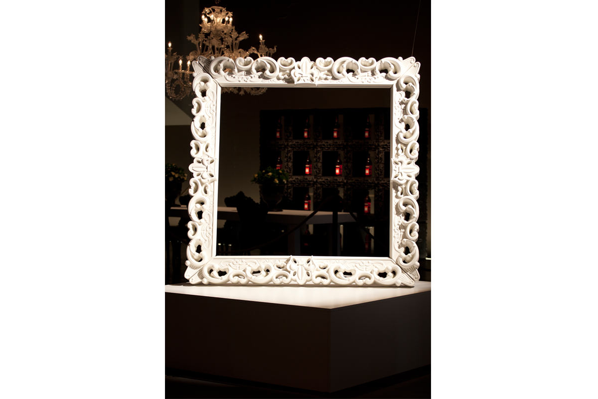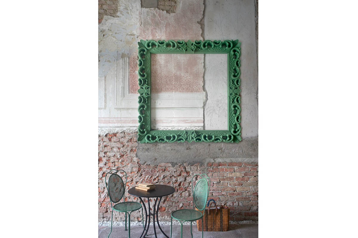 Der Rahmen der Liebe - L ist ein sehr einzigartiges Objekt mit seinen bemerkenswerten Abmessungen und komplizierten Details im Rokoko-Stil, die zweifellos nicht unbemerkt bleiben können. Die imposante Größe der Seiten von 162 x 162 cm ermöglicht es dem Frame of Love mit seiner Majestät, zum Protagonisten der großen Mengen an Hallen, Ausstellungen und Galerien zu werden, die sich in die Philosophie des Makrodesigns integrieren, die kürzlich von SLIDE vorgestellt wurde.