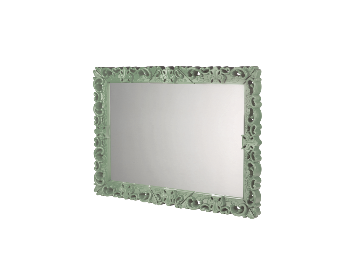 Der Spiegel der Liebe - XL ist ein sehr einzigartiges Objekt mit bemerkenswerten Abmessungen und komplizierten Details im Rokoko-Stil, die zweifellos nicht unbemerkt bleiben können. Die imposante Größe der Seiten von 162 x 223 cm ermöglicht es dem Spiegel der Liebe mit seiner Majestät, zum Protagonisten der großen Mengen an Hallen, Ausstellungen und Galerien zu werden, die sich in die kürzlich von SLIDE vorgestellte Philosophie des Makrodesigns integrieren.