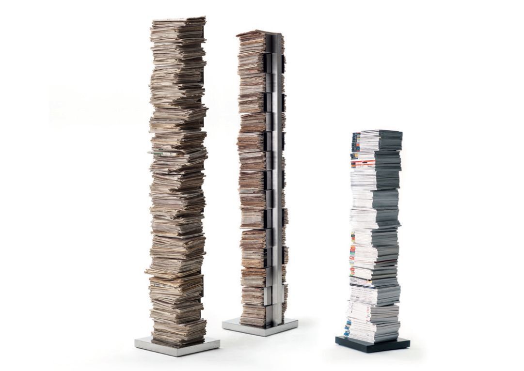 Vertikales freistehendes Bücherregal für großformatige Bücher und Zeitschriften.