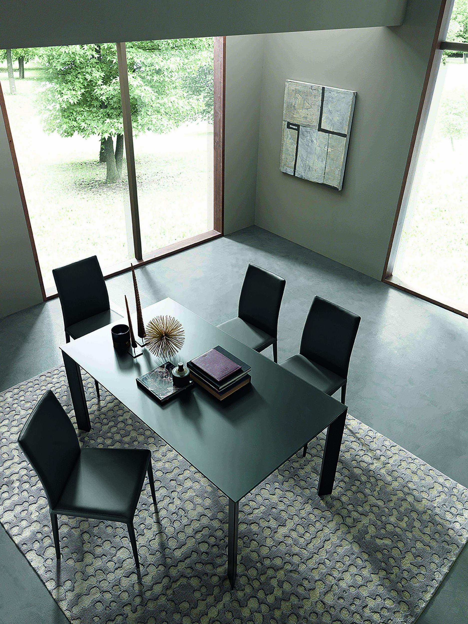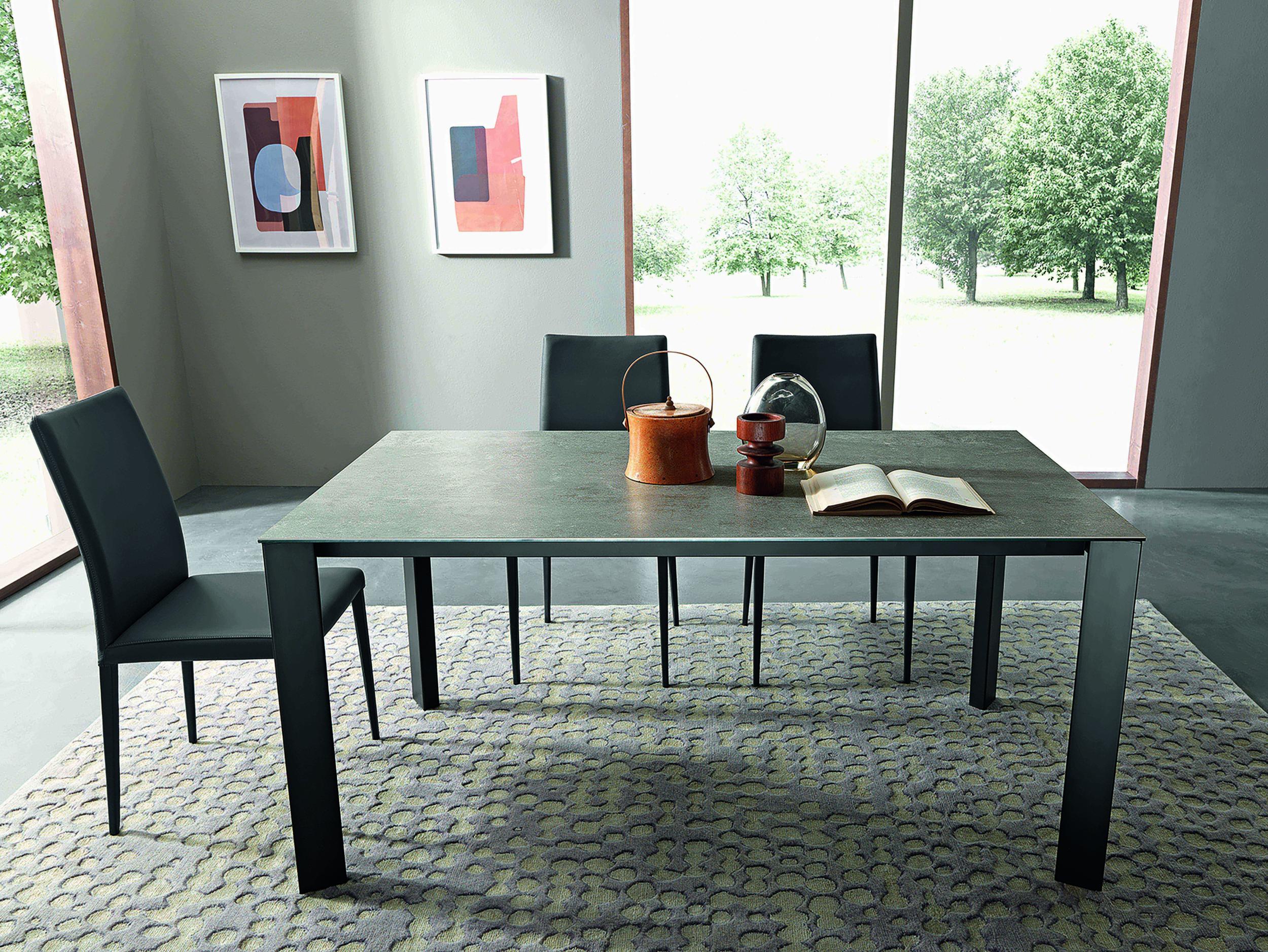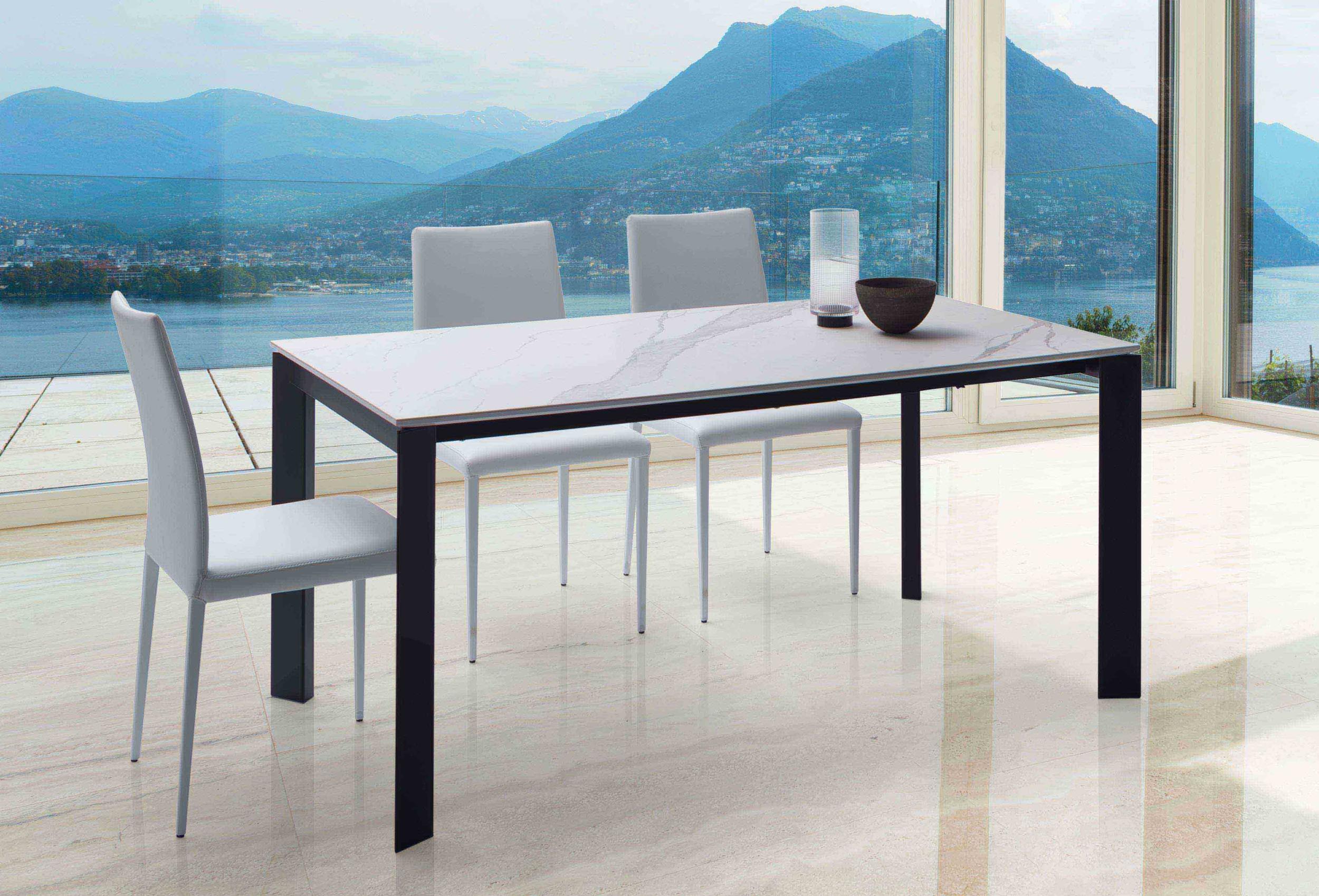 Ausziehbarer Esstisch, Metallrahmen, Teleskopmechanismus, Platte aus Melamin, Glas, Holz, Mörteleffekt oder Keramik, interne Buchverlängerung.