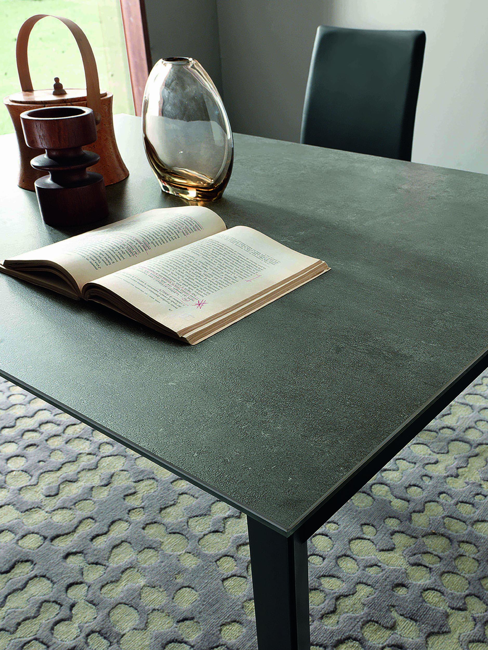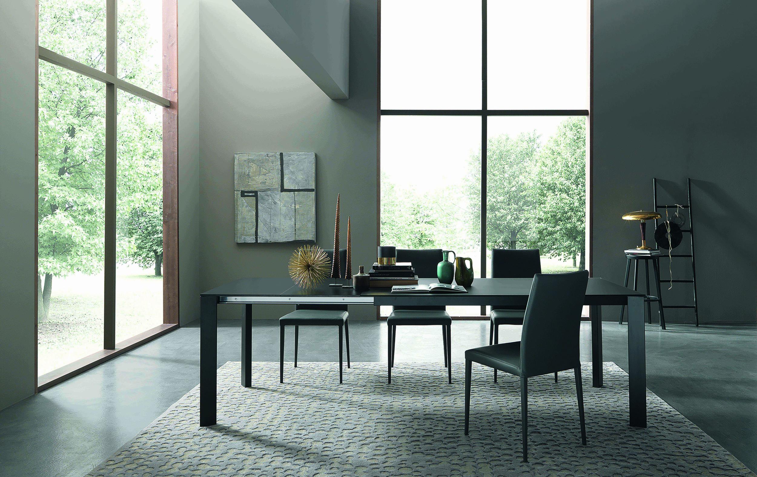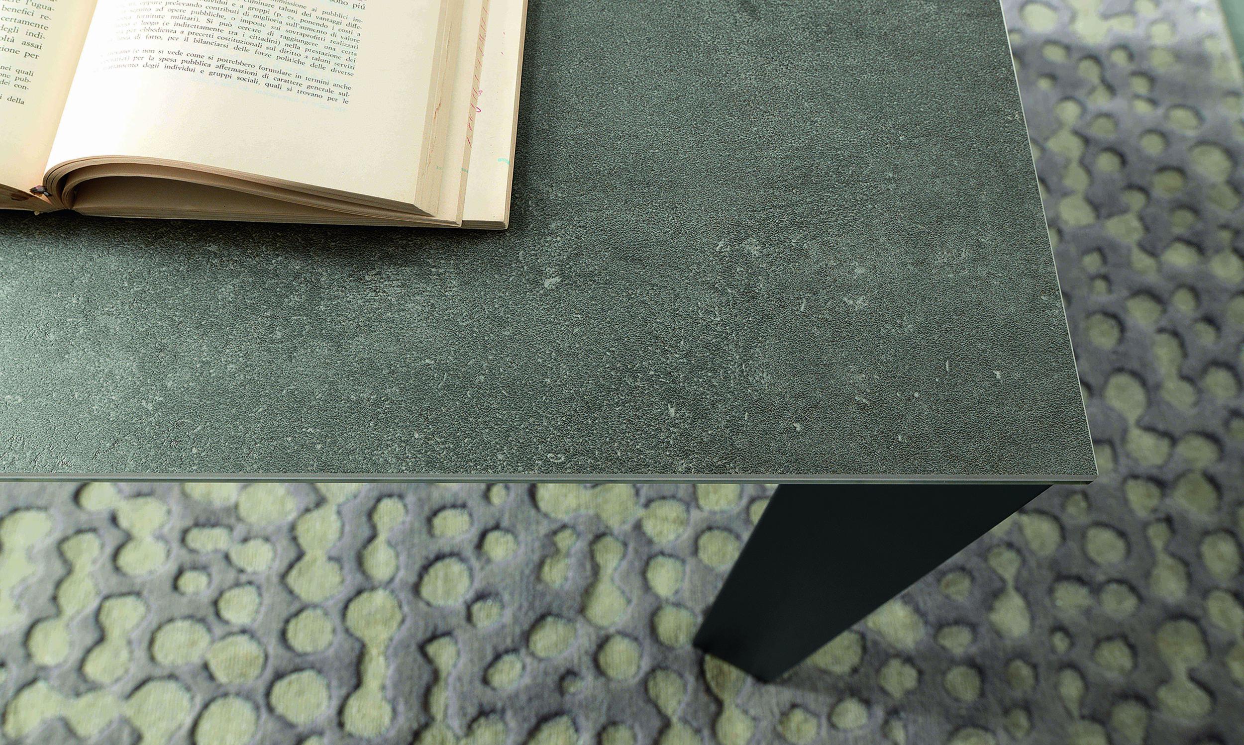 Ausziehbarer Esstisch, Metallrahmen, Teleskopmechanismus, Platte aus Melamin, Glas, Holz, Mörteleffekt oder Keramik, interne Buchverlängerung.