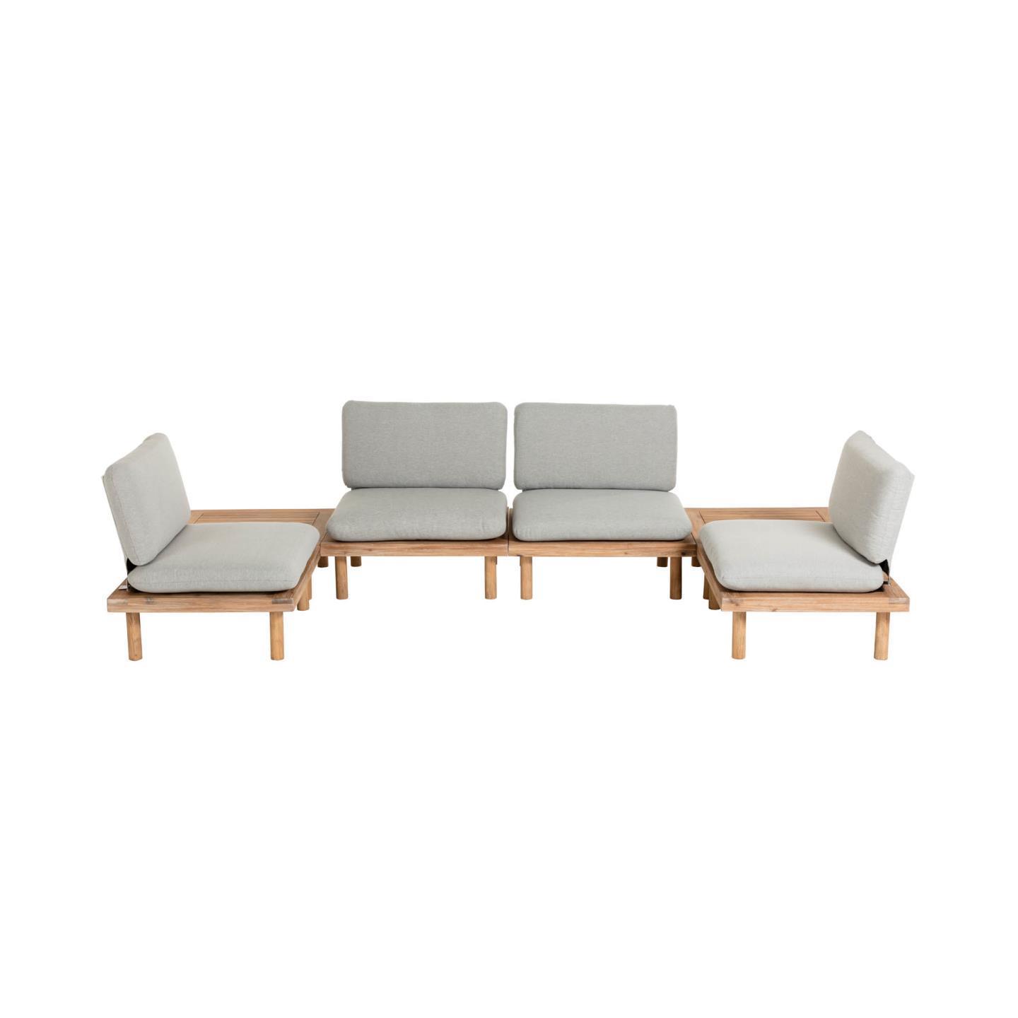| Material | 52 % Akazienholz (Acacia auriculiformis), 30 % Stahl, 7 % Stoff, 7 % Schaumstoff (Polyurethan), 4 % Acrylfasern |