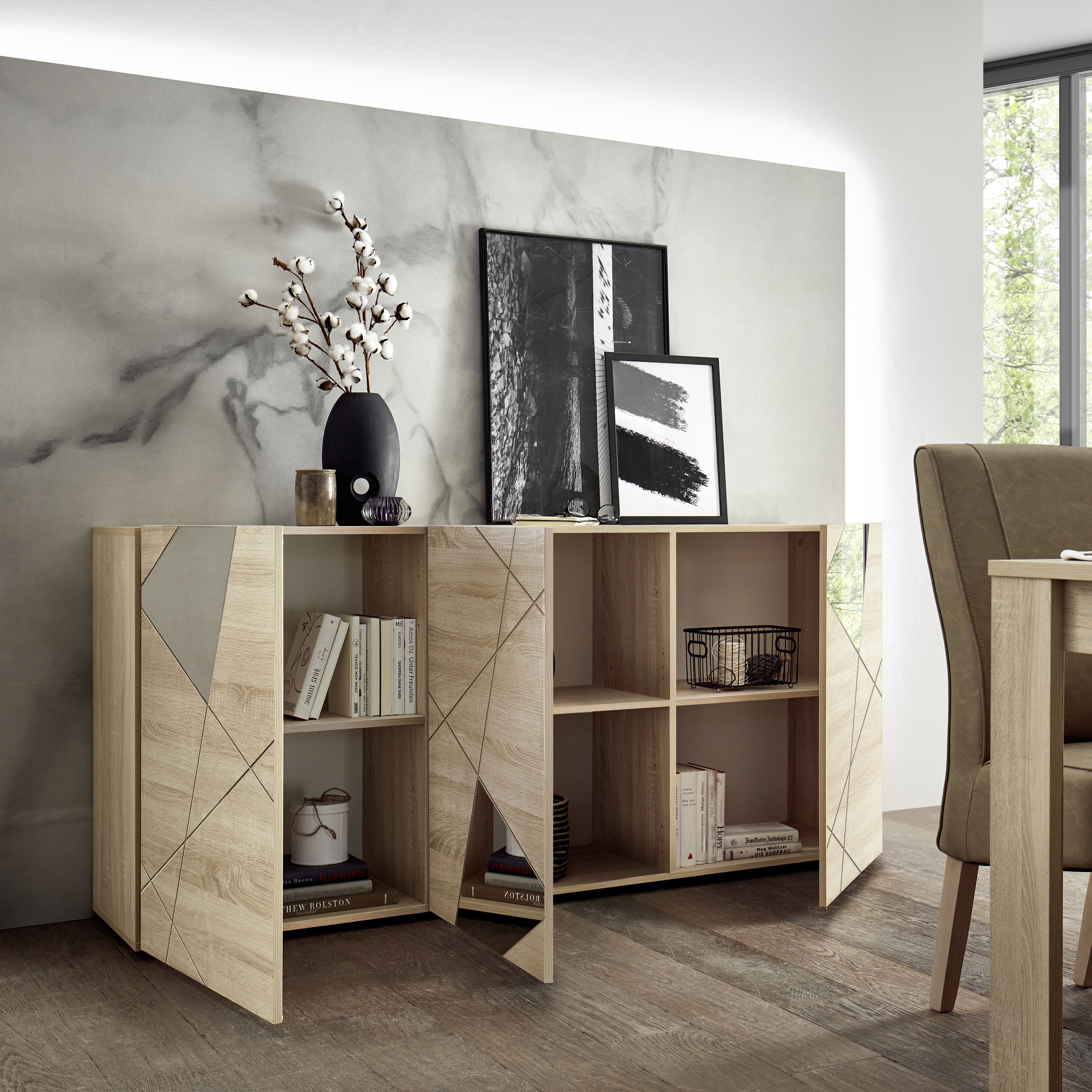 | Beenden | Samoa-Eiche mit Siebdrucken und Spiegeln |