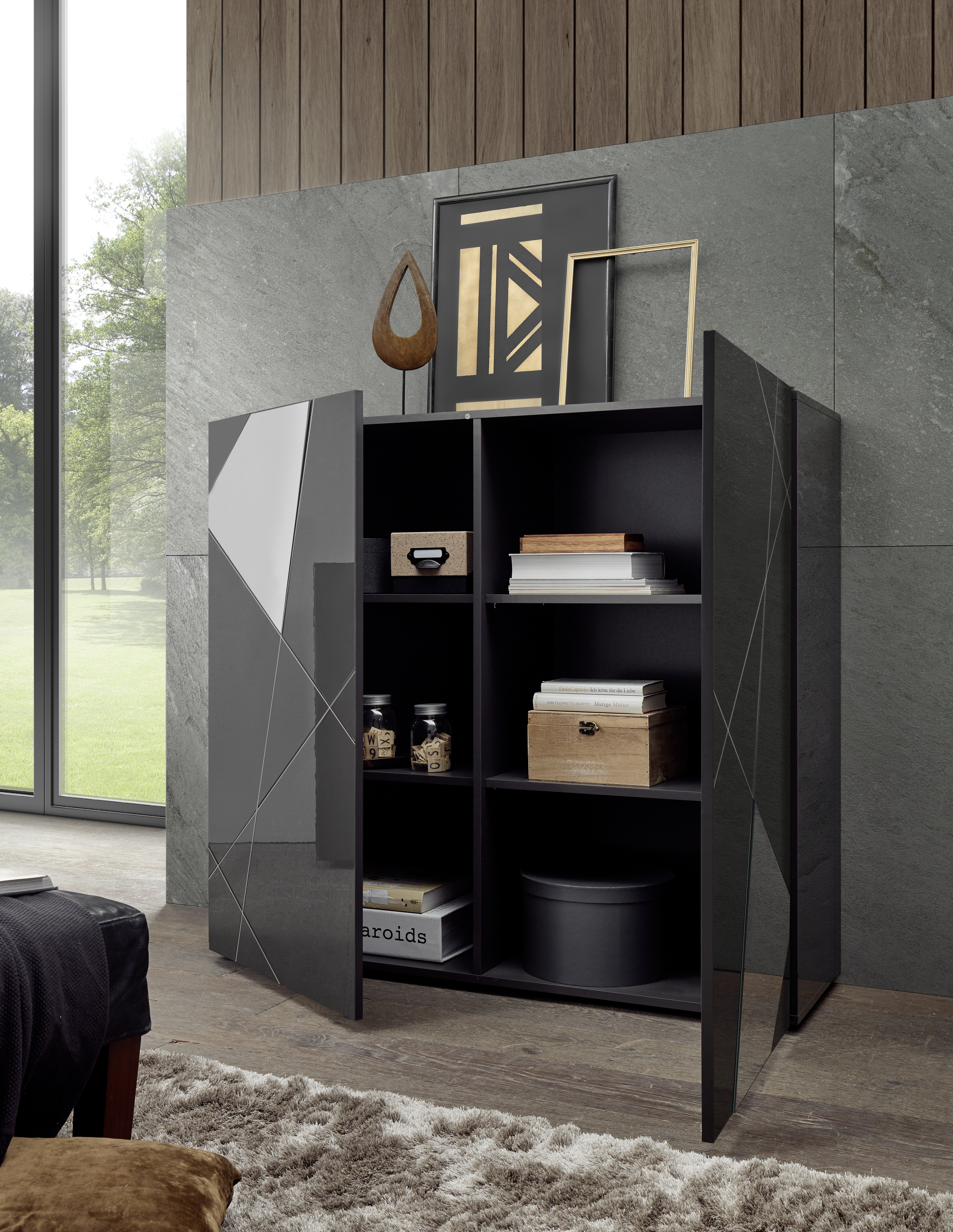 | Beenden | Glänzend lackiertes Grau mit Siebdruck und Spiegeln |