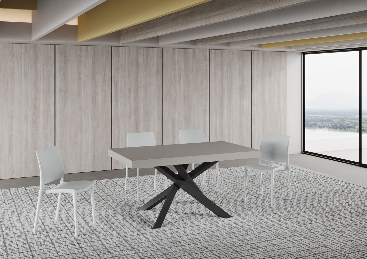 Volantis ausziehbarer Tisch 90x160/420 cm mit anthrazitfarbenem Gestell