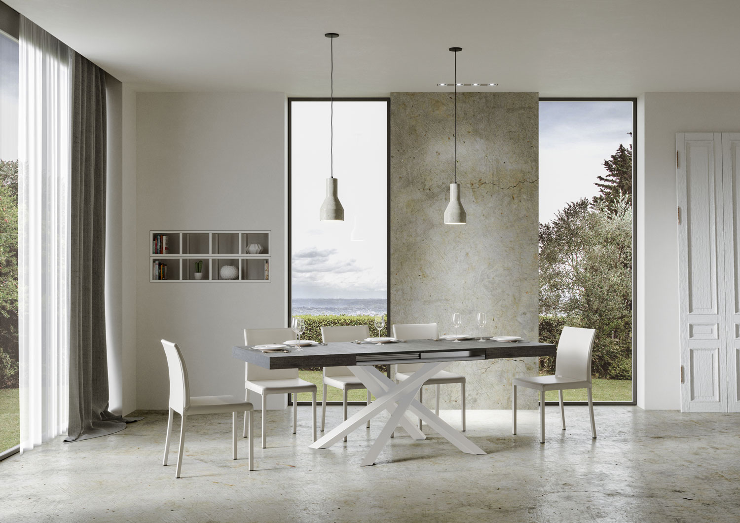 Ausziehtisch Volantis 140, aus modernem Design und anspruchsvollem Stil, fügt sich perfekt in jeden Einrichtungskontext ein und ist die ideale Lösung sowohl für die Küche als auch für das Wohnzimmer, wo Sie Ihre Gäste immer stilvoll empfangen können. Der Ausziehtisch Volantis lässt sich schrittweise bis 244 cm ausziehen, mit Platz für bis 12 Personen. Melaminbeschichtete Spanplatten, Eisenbeine, die Haupttischplatte wird mit Folding-Bearbeitung gefertigt. Das Auszugssystem mit Aluminium-Teleskopschienen macht den Tisch auch im ausgezogenen Zustand stabil und robust, ohne dass zusätzliche Stützen erforderlich sind. Die Verlängerungen sind sofort einsatzbereit, da sie unter der Hauptplatte des Tisches untergebracht sind. Itamoby Produkt Made in Italy Maße: Im geschlossenen Zustand: B.140 T.90 H.77 cm Mit 1 Verlängerung im Einsatz: 192 cm Mit 2 Verlängerungen im Einsatz: 244 cm