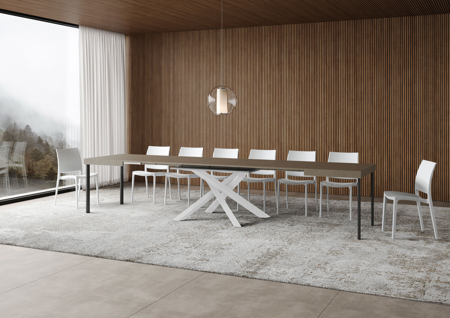 Der Ausziehtisch Volantis lässt sich schrittweise bis 400 cm ausziehen, mit Platz für bis 18 Personen.