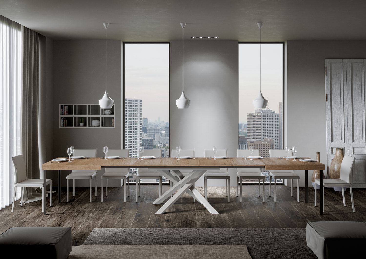 Der Ausziehtisch Volantis lässt sich schrittweise bis 440 cm ausziehen, mit Platz für bis 18 Personen.