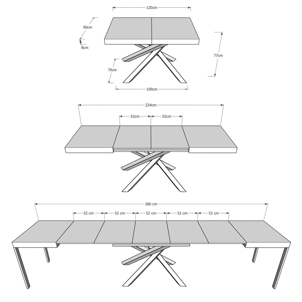 Ausziehtisch Volantis Evolution 120, aus modernem Design und anspruchsvollem Stil, fügt sich perfekt in jeden Einrichtungskontext ein und ist die ideale Lösung sowohl für die Küche als auch für das Wohnzimmer, wo Sie Ihre Gäste immer stilvoll empfangen können.