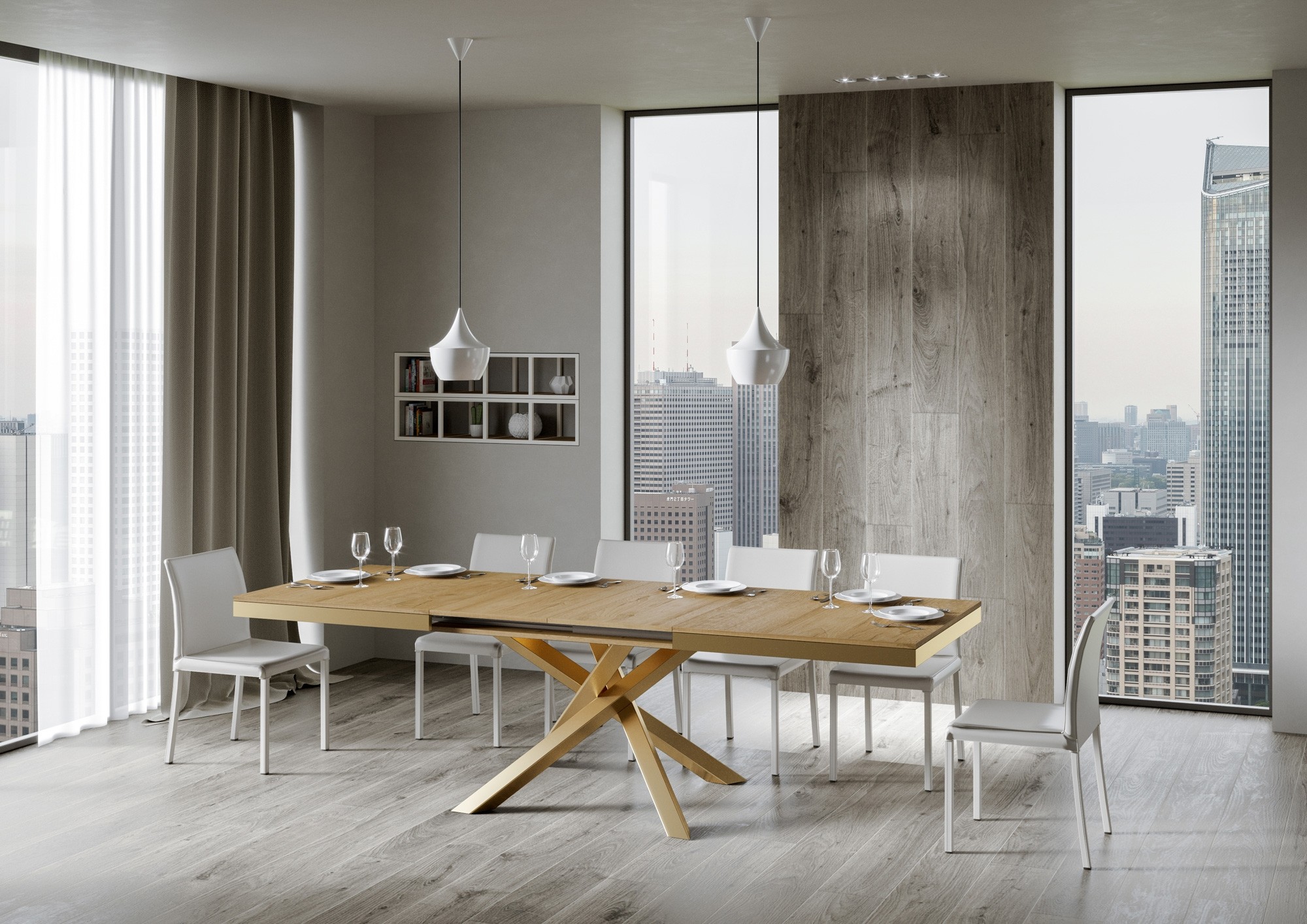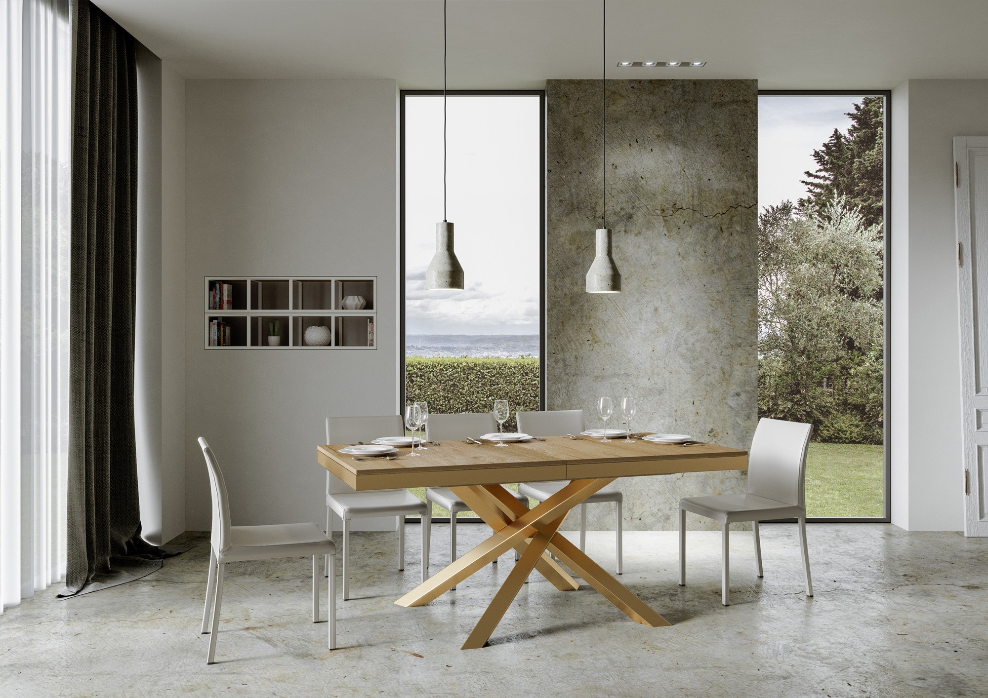 Volantis Evolution ausziehbarer Tisch 90x160/264 cm mit Goldrahmen