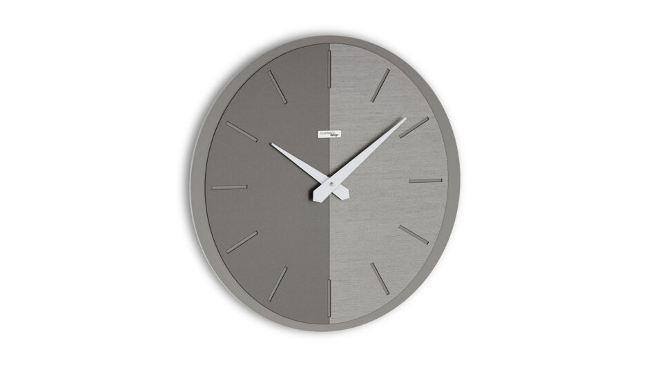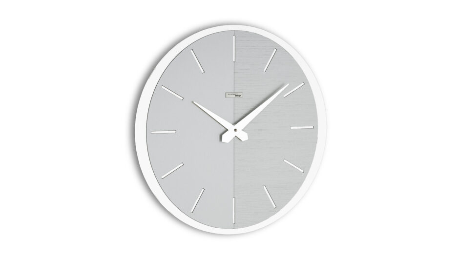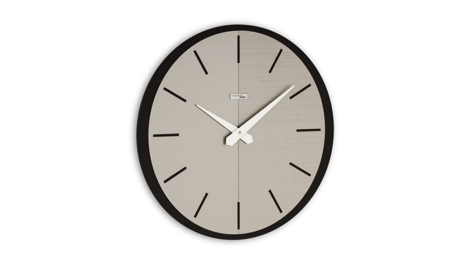 Die von Incantesimo entworfene Vox- Uhr hat ein elegantes Design im modernen Stil. Die Besonderheit des in zwei Teile geteilten Zifferblatts macht es einfach und wesentlich, mit einem Design, das es ermöglicht, es in jede Art von Möbel einzufügen.