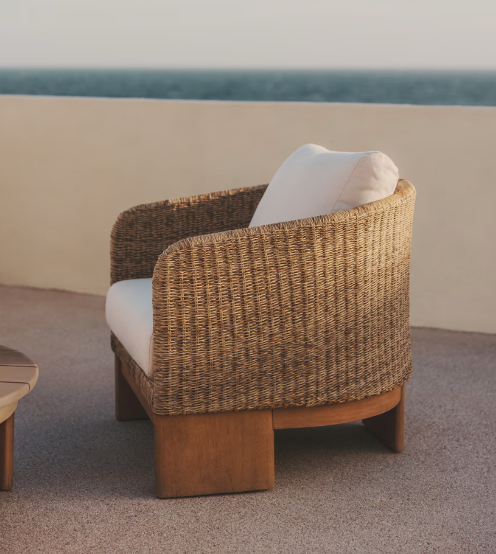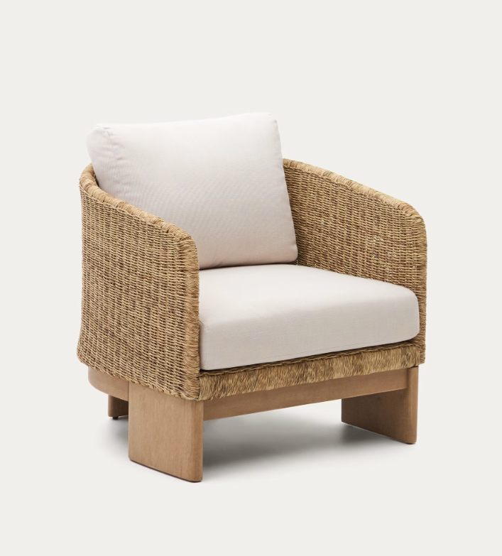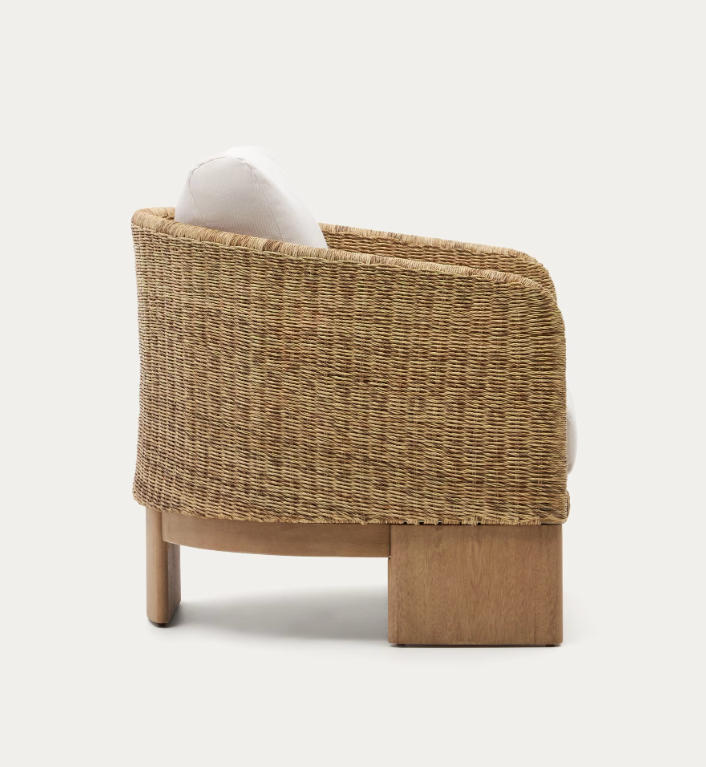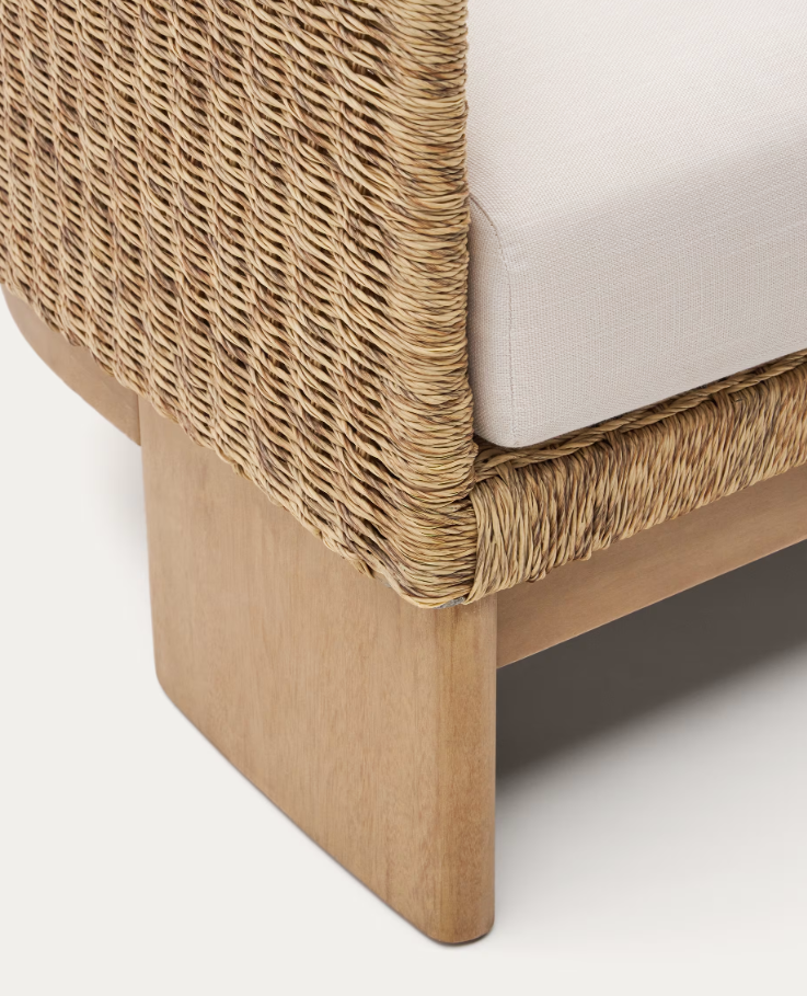 | Materialien | 45 % Eukalyptusholz (Eucalyptus grandis), 30 % Aluminium, 15 % synthetisches Korbgeflecht, 8 % Schaumstoff (Polyurethan), 2 % Stoff |
