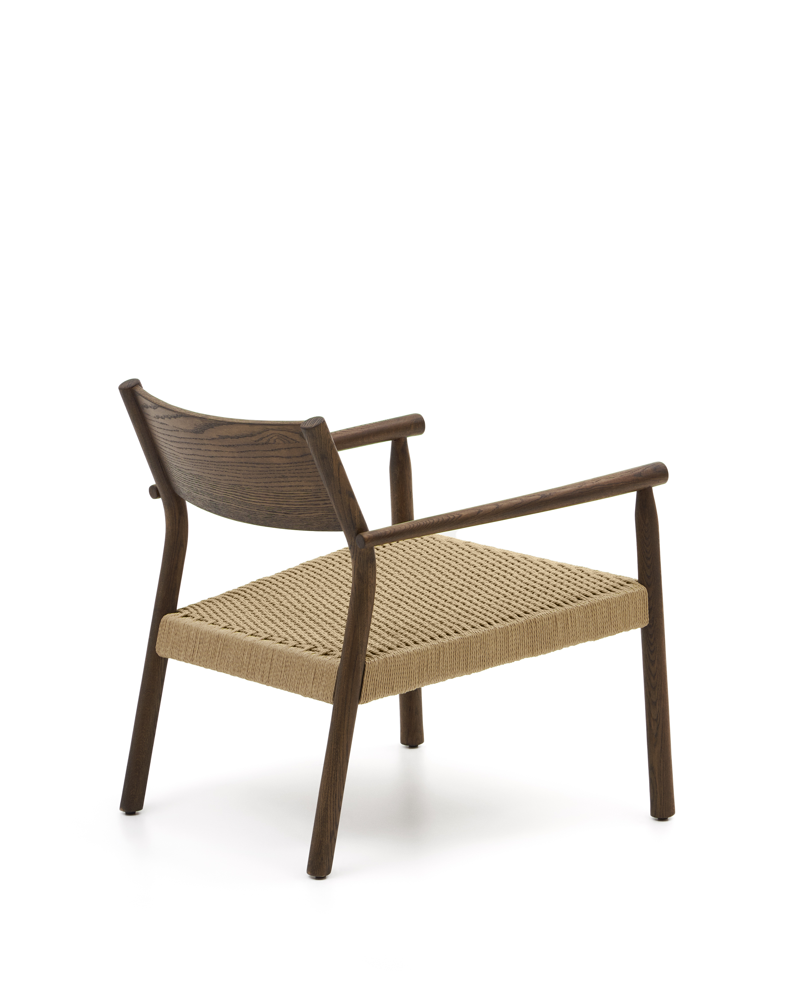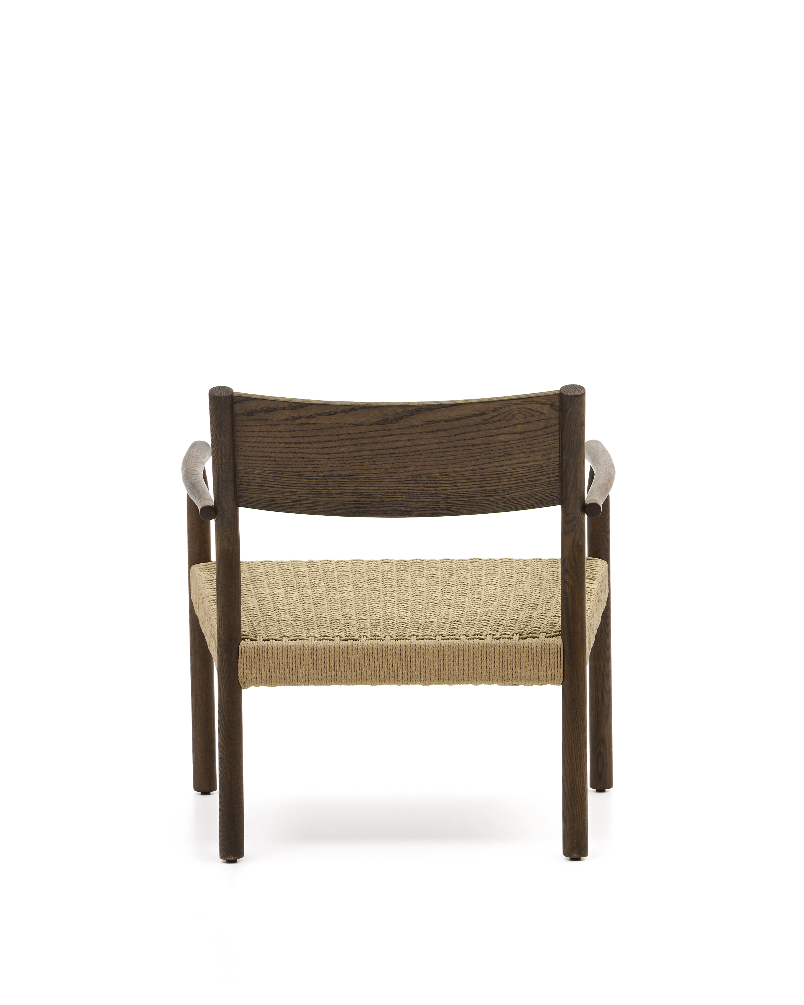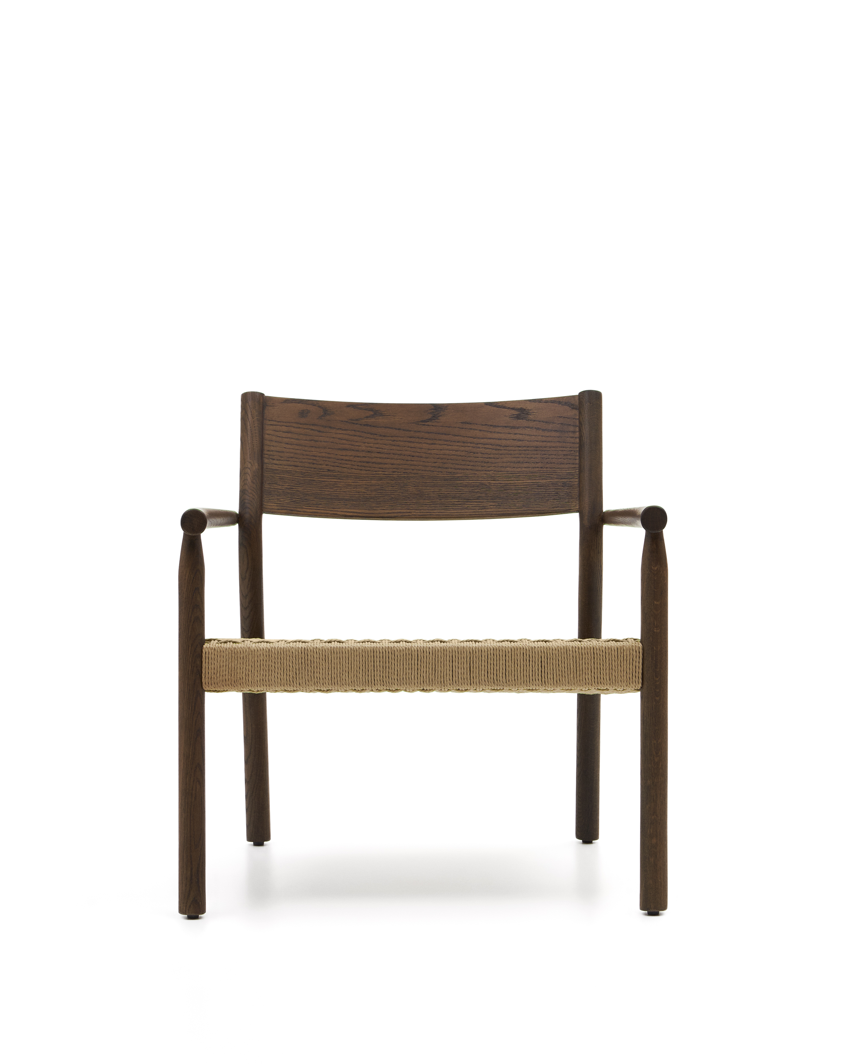 Yalia-Sessel aus massivem FSC-Eichenholz 100 % mit Walnuss-Finish und Sitzfläche aus Papierkordel