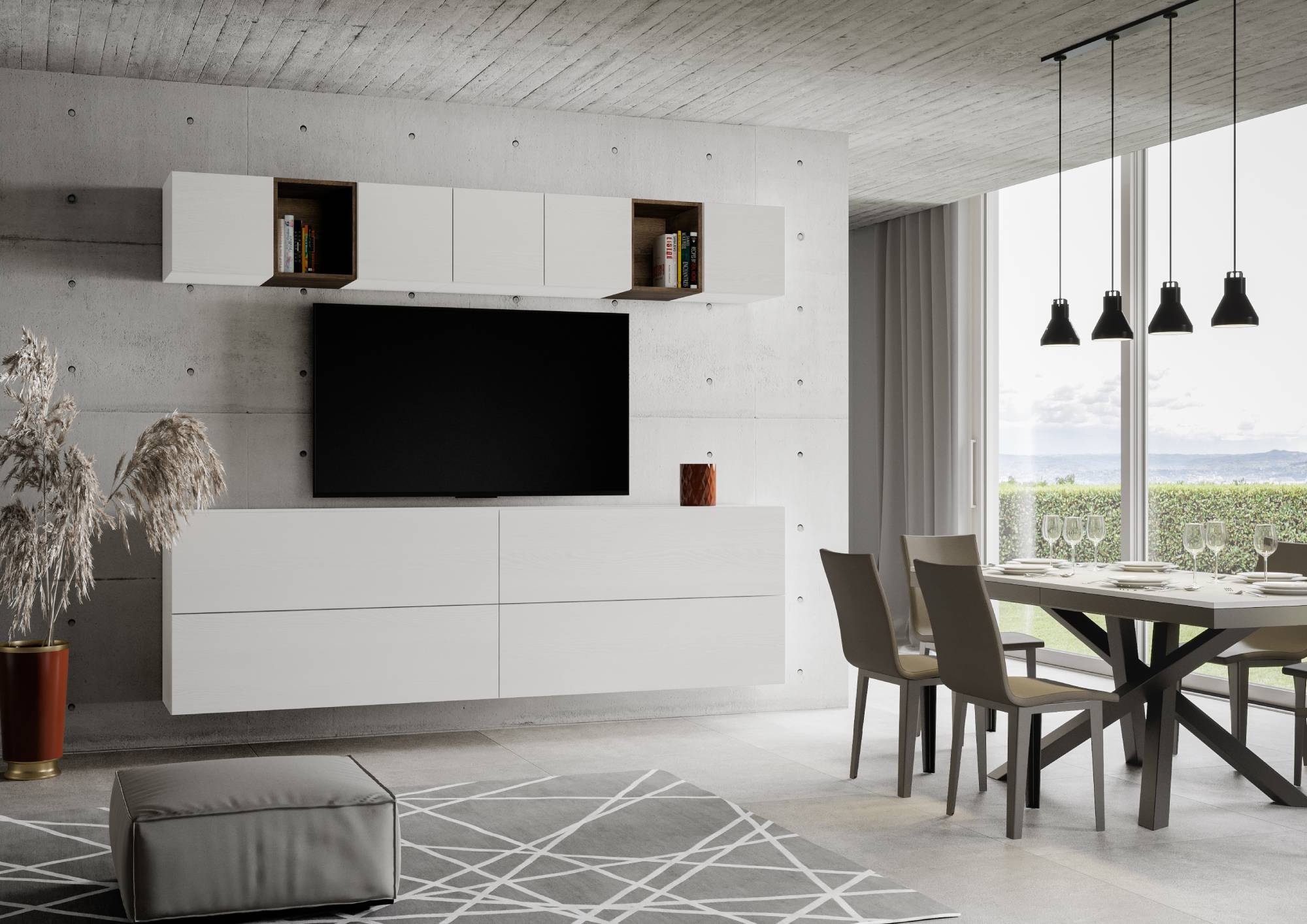 Isoka A104 Wohnwandelement Isoka-Wandelemente sind die perfekte Lösung zum Ordnen Ihrer Bücher, Dekorationsgegenstände und anderer Objekte im Wohnbereich. Die Stärke von Isoka ist seine Tiefe: Im Gegensatz zu den meisten anderen Wandelementen sind die Wandelemente 40 cm tief, sodass Sie in jedem Element mehrere, auch große Objekte unterbringen können. Die Wandelemente sind mit einem Push-Pull-Öffnungsmechanismus ausgestattet und öffnen sich dank Gasdruckfedern fast automatisch. Isoka-Kompositionen sind individuell anpassbar: Die Elemente können nach Ihren Wünschen angeordnet werden. Enthält: 5 Würfel-Wandelemente 40 cm; 2 offene Wandelemente B.34 H.40; 4 horizontale Wandelemente 133,6 cm. Abmessungen der einzelnen Elemente: - Würfel-Wandelement B.40 x H.40 x T.39,2 cm - Offenes Wandelement B.34 x H.40 x T.39,2 cm - Horizontales Wandelement B.34 x H.40 x T.39,2 cm. L.133,6 x H.40 x T.39,2